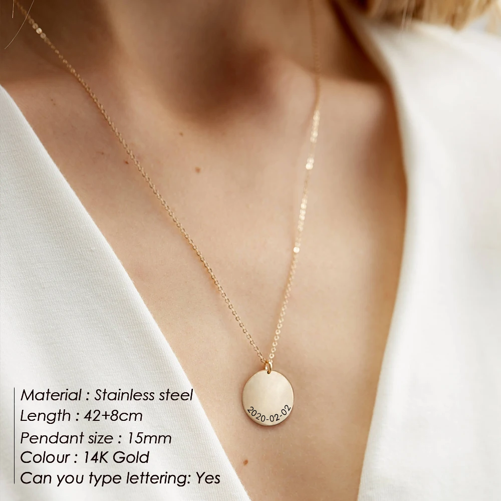 EManco простой индивидуальный 15 мм диск Arcuated дизайн инициалы имя чокер ожерелье 316L Нержавеющая сталь ожерелье женские ювелирные изделия
