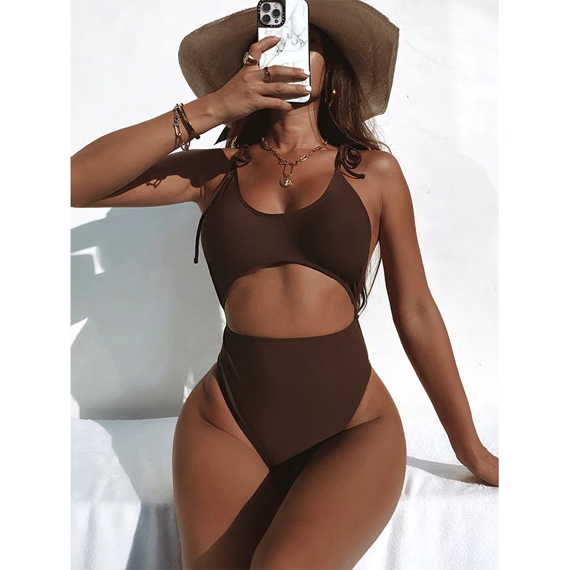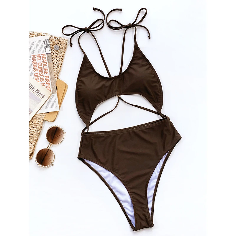 Бандажный сексуальный женский слитный купальник 2022, однотонный ку...
