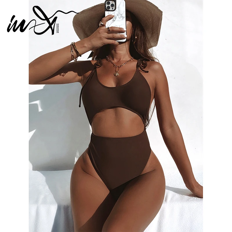 Однотонный Цельный купальник In-X, женские бандажные купальные костюмы, купальник с высоким вырезом, женские костюмы для ванной, 2022
