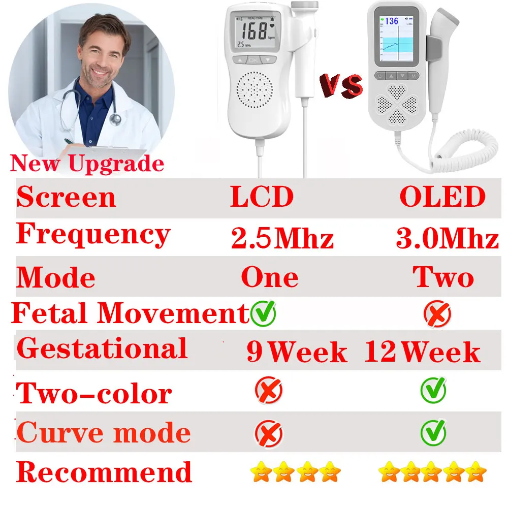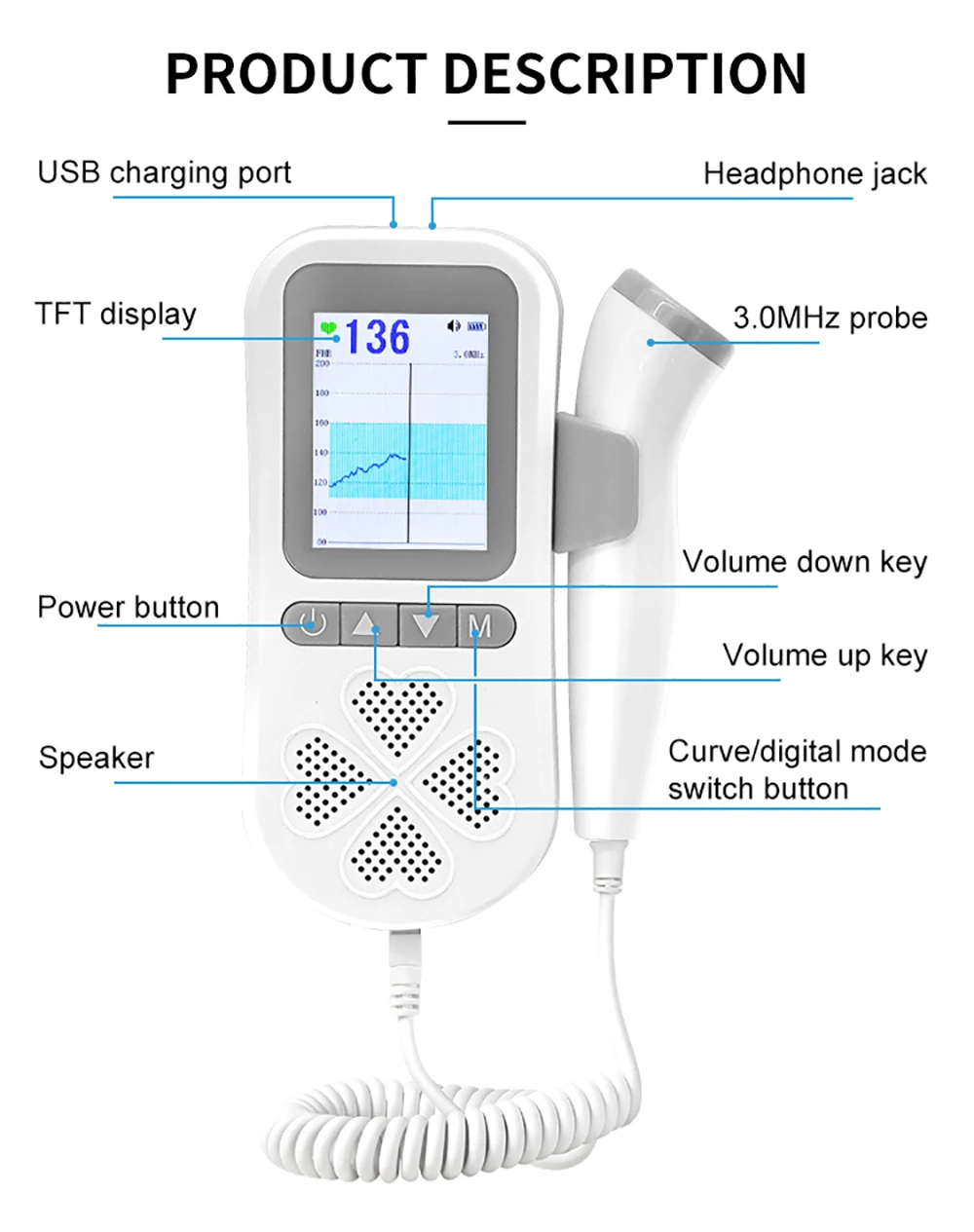 Медицинский допплер плода, двухрежимный монитор сердечного ритма, 3...