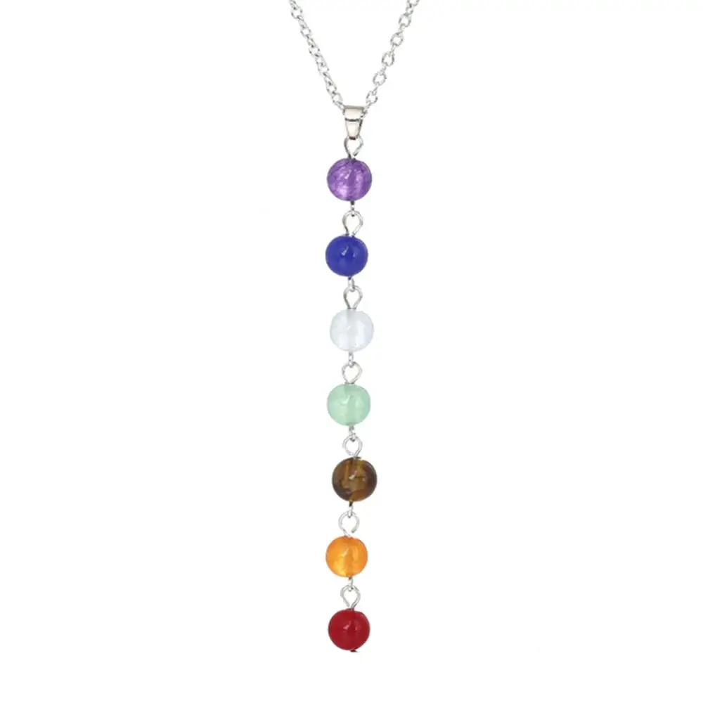 7 Чакр Красочные Бусины Длинное висячее ожерелье Йога балансировка камень ювелирные изделия подарок