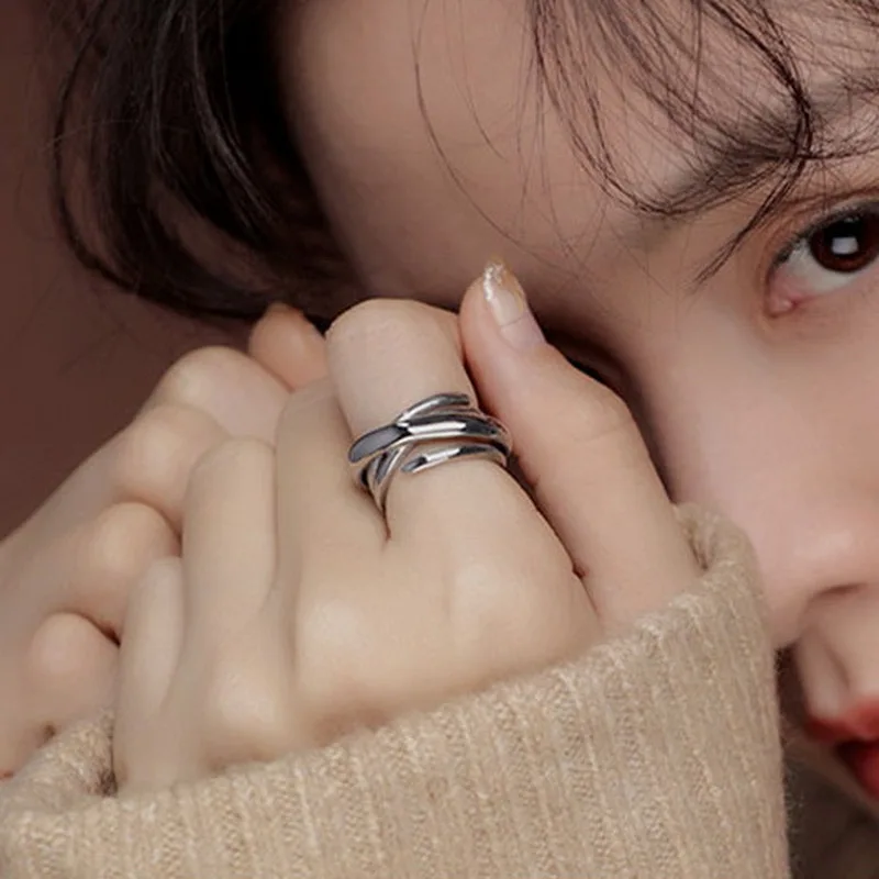 Простое винтажное многослойное кольцо для женщин серебряного цвета богемное регулируемое кольцо на палец геометрические Открытые Кольца неправильной формы ювелирные изделия