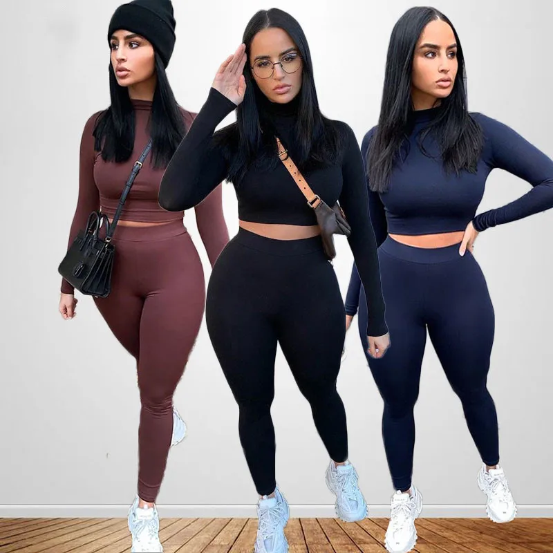 Весенний модный спортивный костюм для женщин, короткий топ без рукавов с высоким воротником и леггинсы, подходящий комплект, эластичный спортивный костюм для фитнеса, повседневная одежда