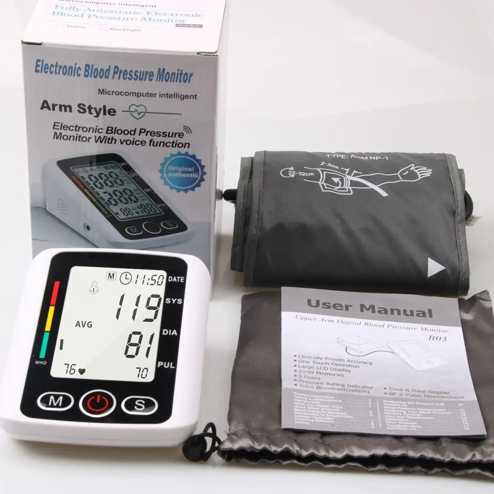 Электронный сфигмоманометр с USB-зарядкой, точный регулируемый манжет с ЖК дисплеем, полностью автоматический бытовой