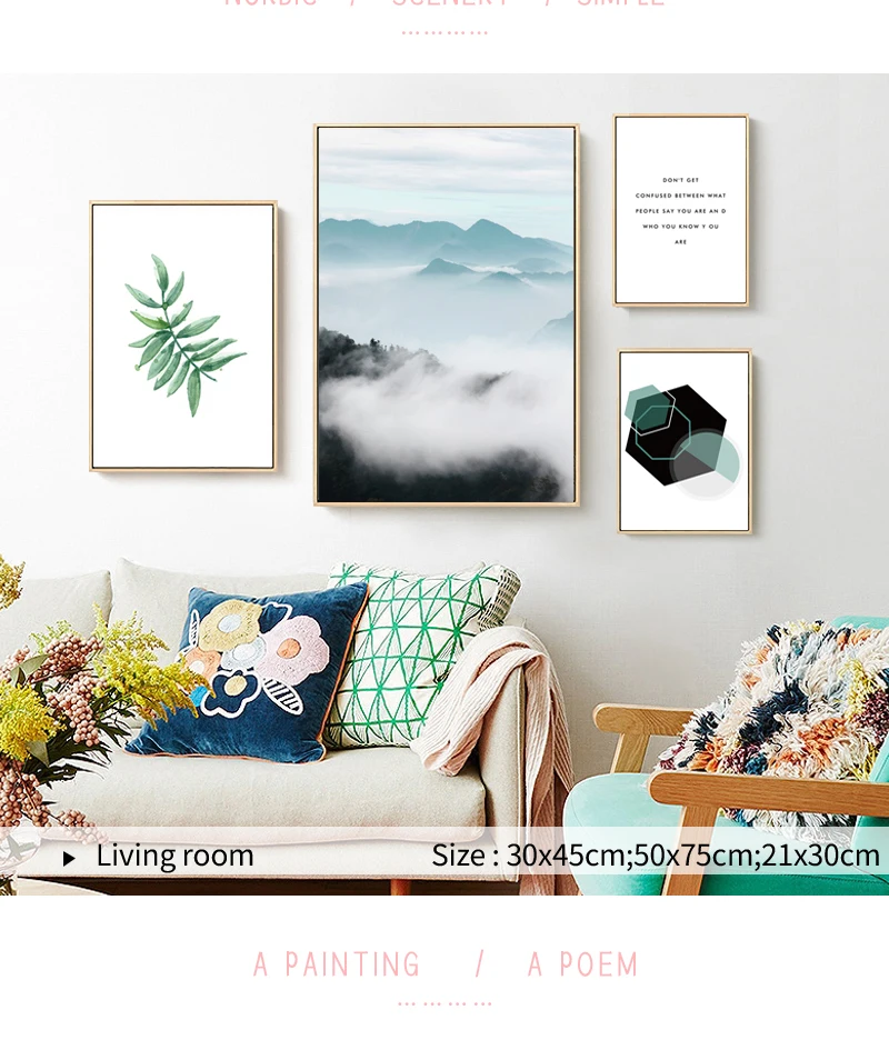 Горный Лист Плакат Геометрия Картина пейзаж Искусство холст картины украшение стены природа печать Декор для гостиной спальни дома