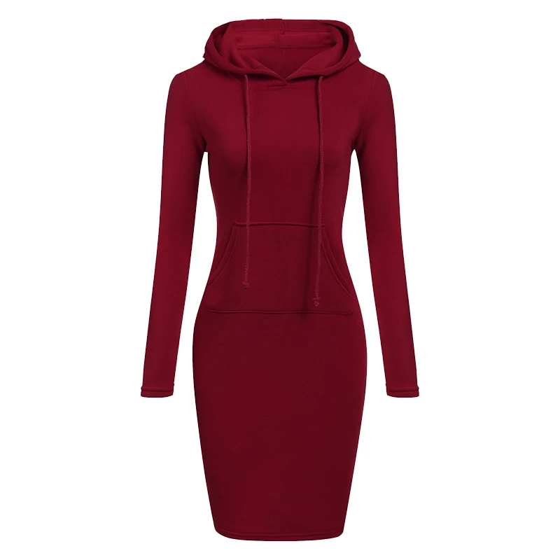Женское облегающее платье-карандаш с длинным рукавом и капюшоном