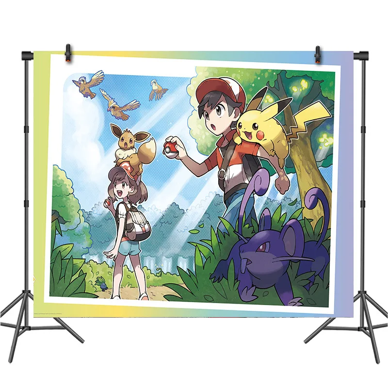 Фон для фотосъемки с изображением покемона Пикачу в стиле аниме на день рождения