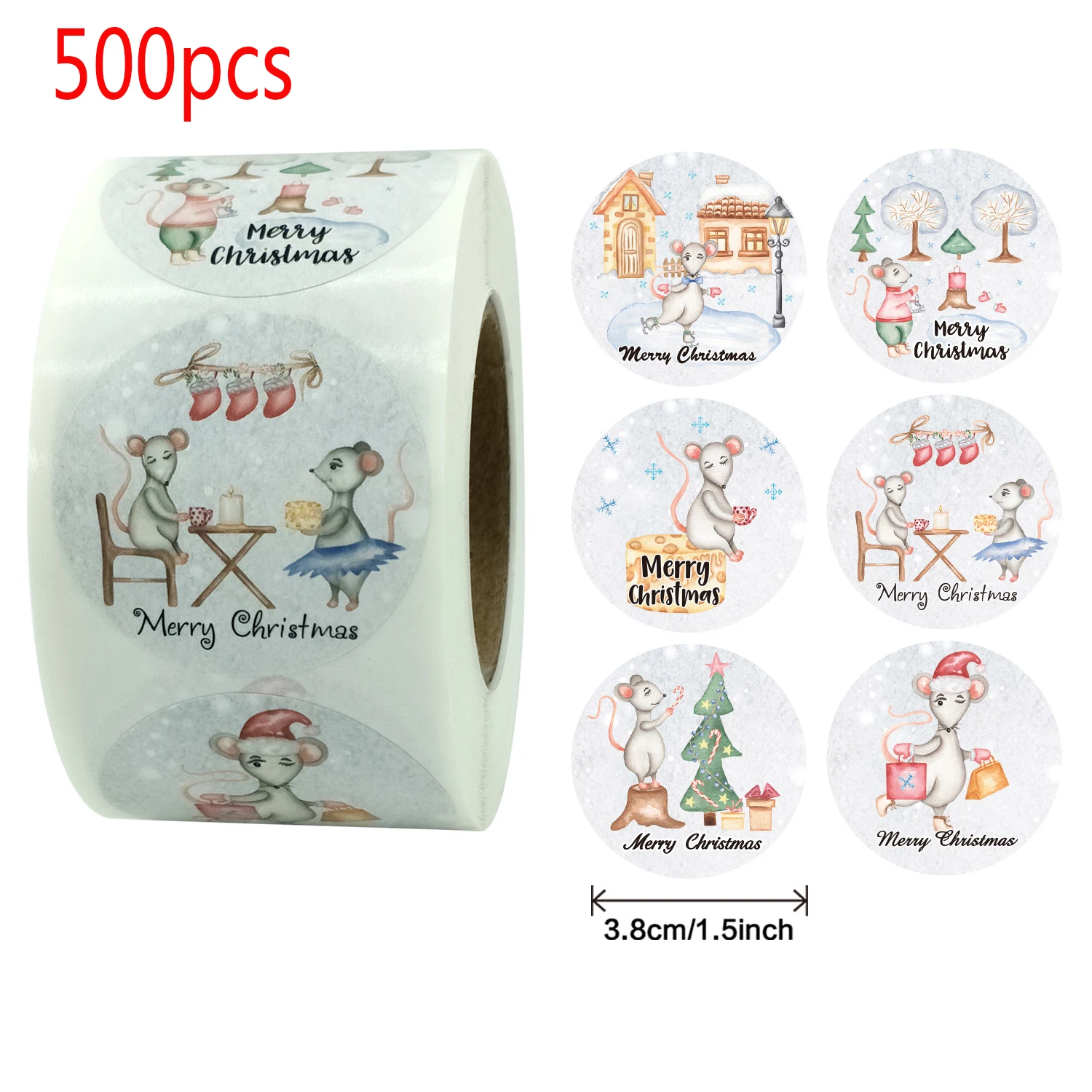 500 шт. 1,5 дюймов с Рождеством наклейки милый дом Мышь декоративны...