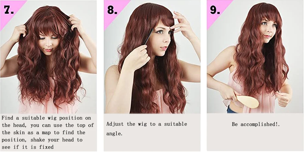 Оранжевый парик с челкой, длинные волнистые Искусственные парики для женщин, синтетический винно-красный парик из термостойкого волокна