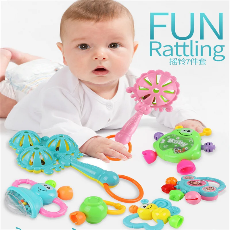 7 шт.лот детские игрушки-погремушки для новорожденных детей Колокольчик для рук детские развивающие игры из АБС детские игрушки 0-12 месяцев