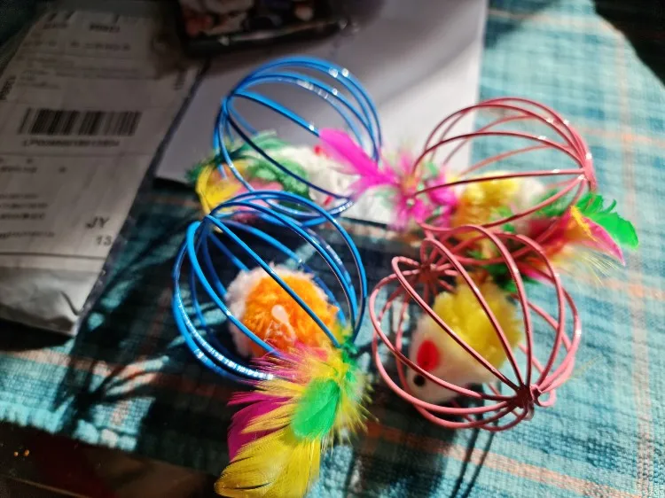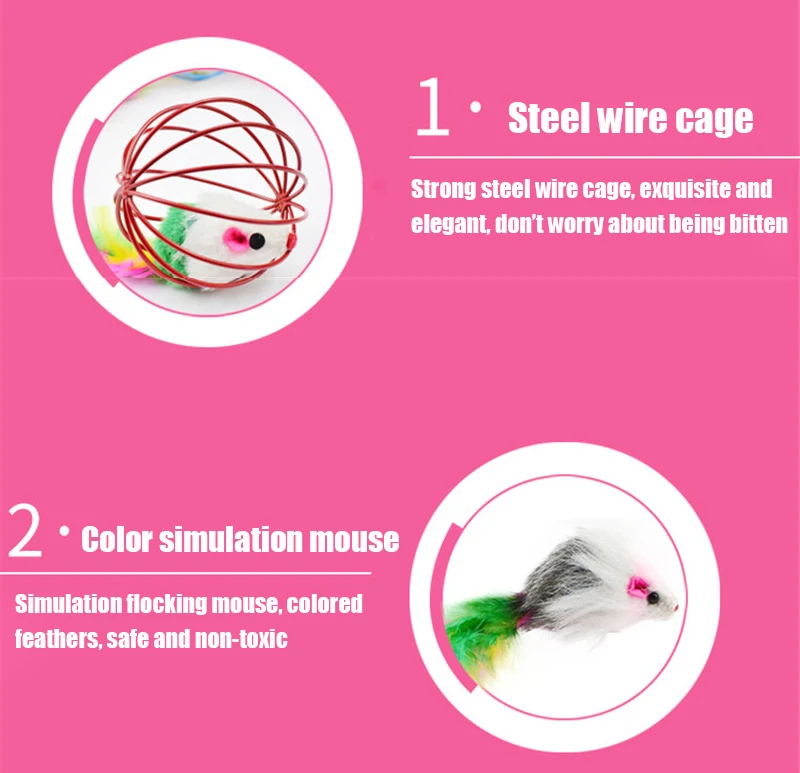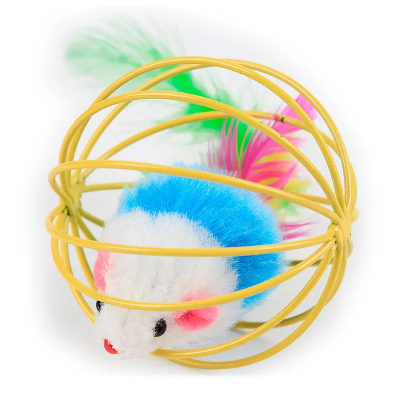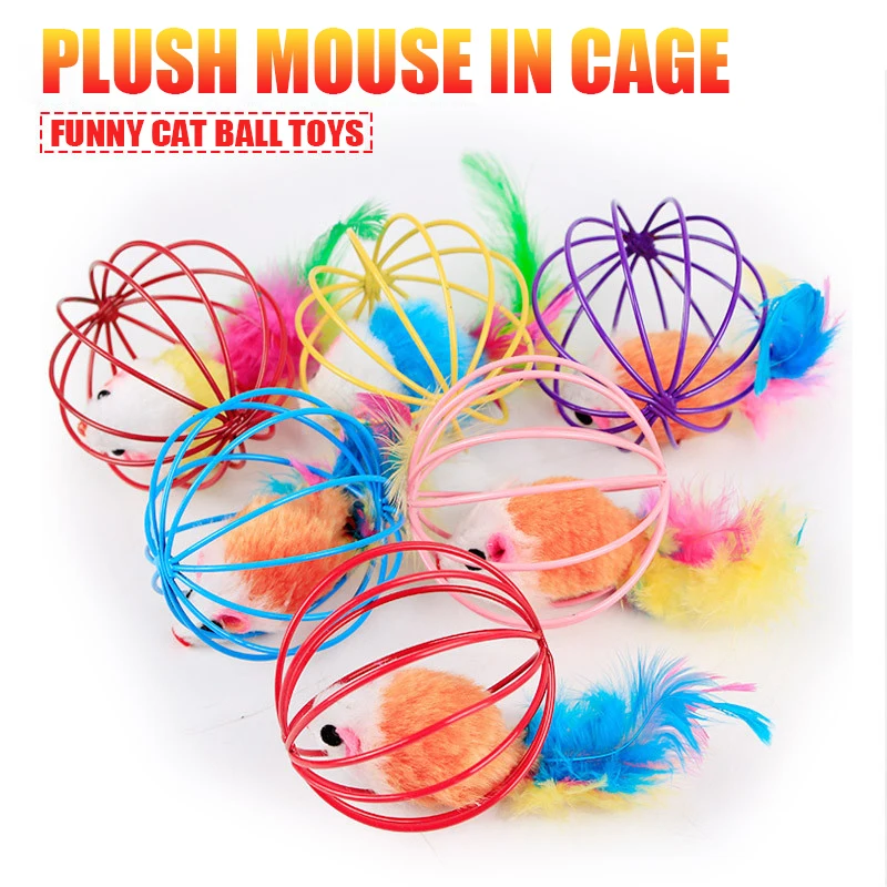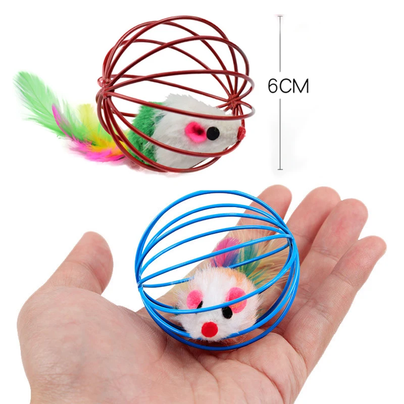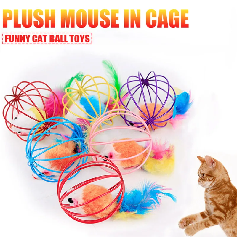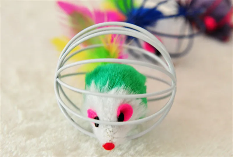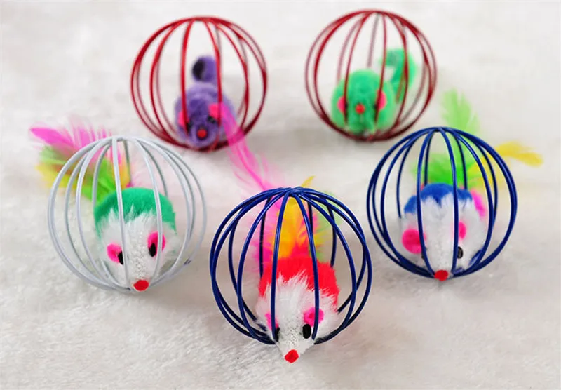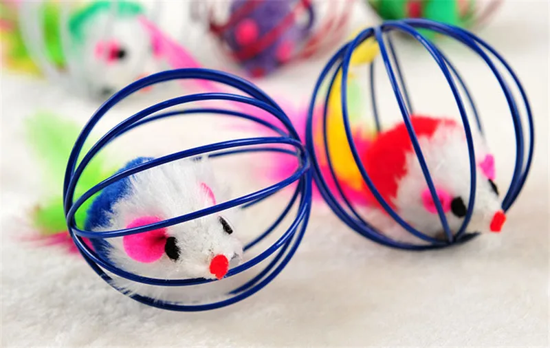 Симпатичные игрушки для домашних животных, клетка, мышь, креативная игрушка, Проволочная клетка, меховая мышь, игрушка для кошек, 1 шт.5 шт.10 шт., случайные цвета, интерактивные игрушки для кошек