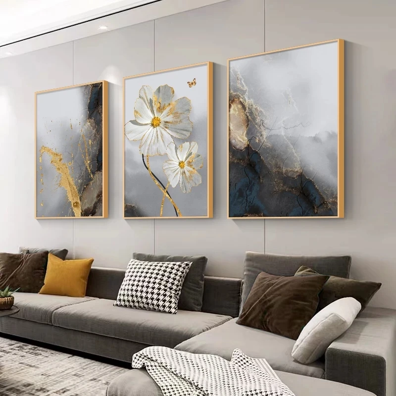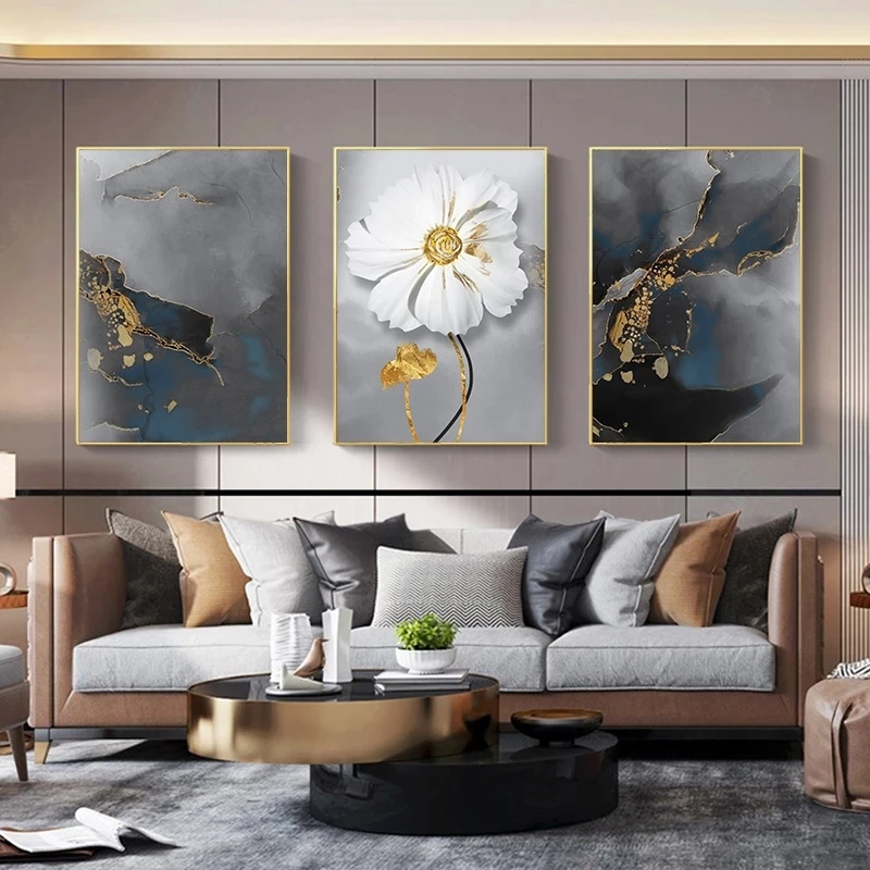 Скандинавская Картина на холсте с цветами, настенная живопись, абстрактный принт для спальни, Черное золото, украшение для гостиной, отеля, домашний декор