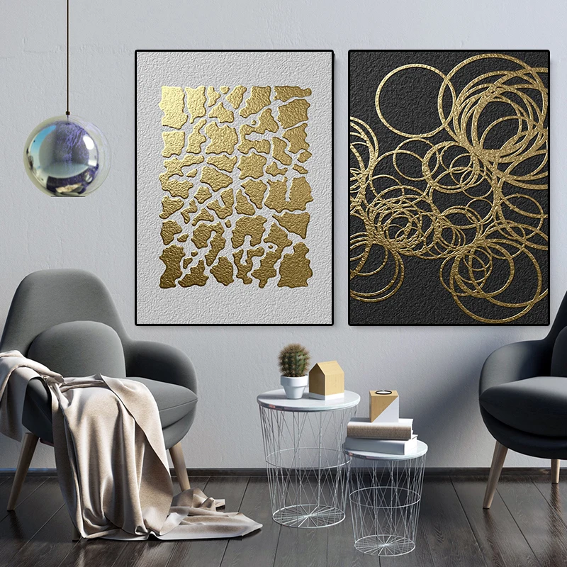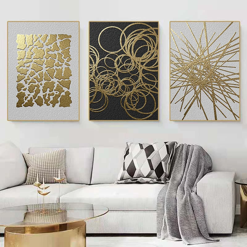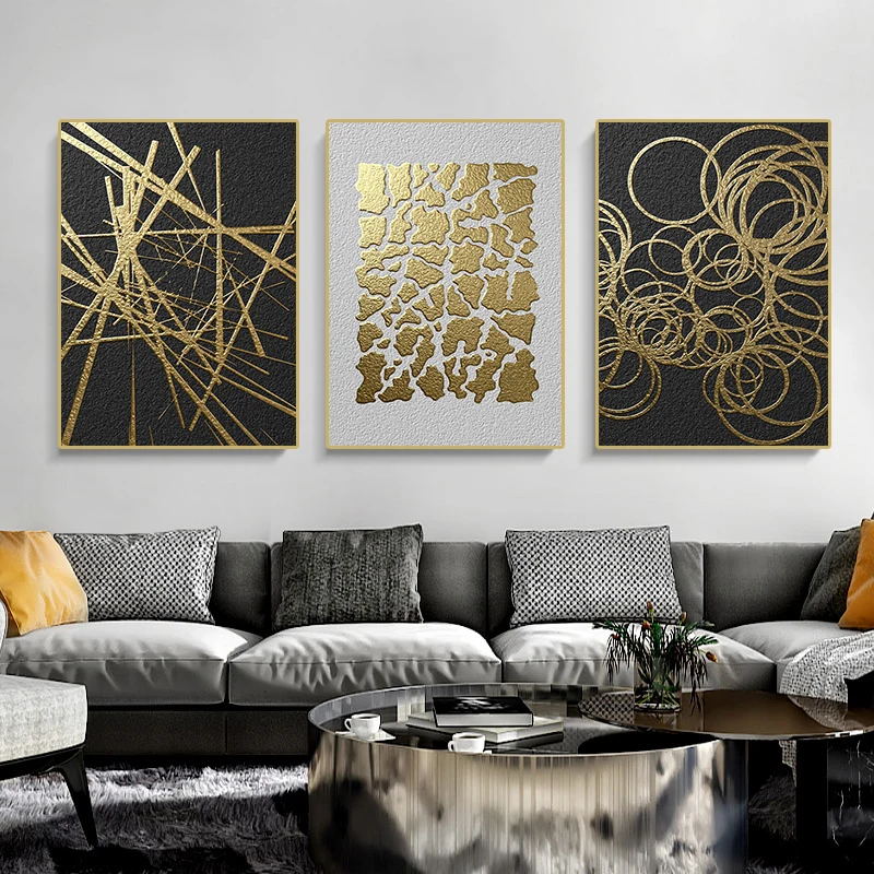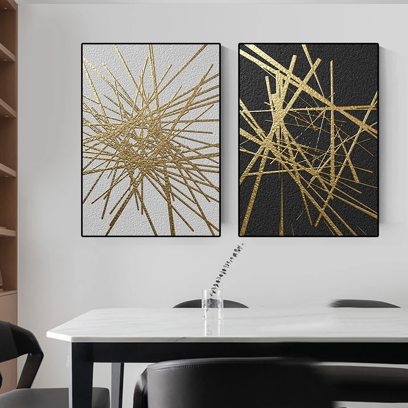 Плакаты и принты с прострочкой черных и золотых линий, абстрактная Геометрическая Картина на холсте, современное настенное искусство, украшение для спальни, коридора, дома