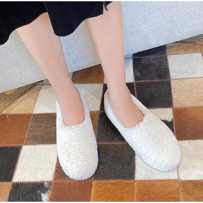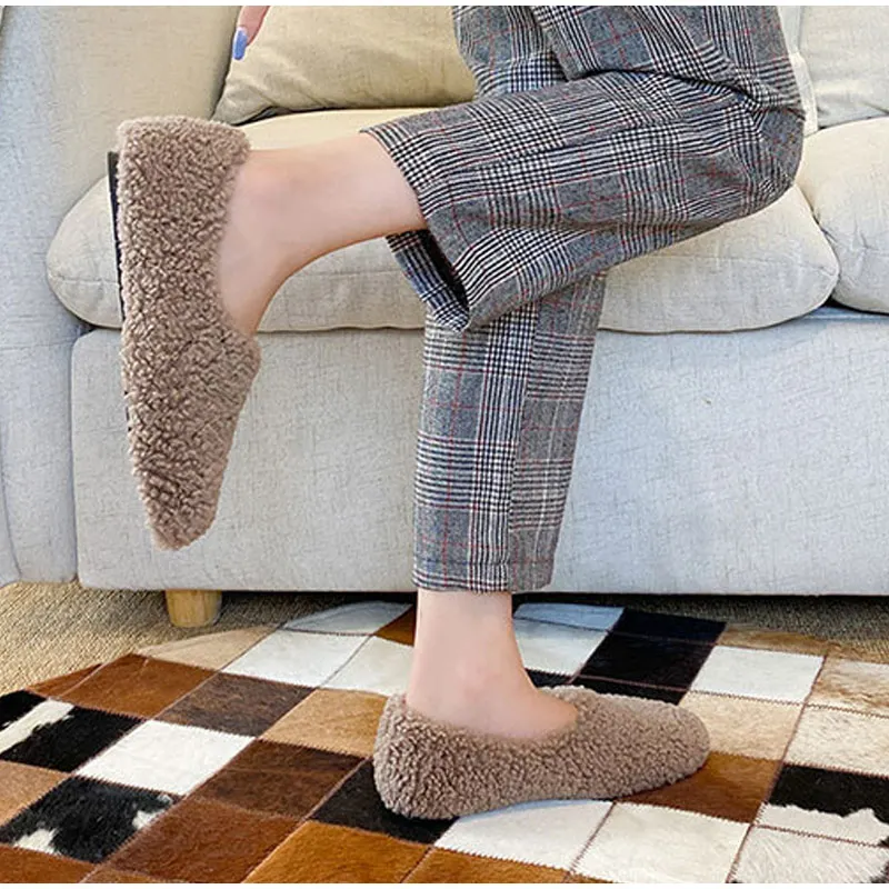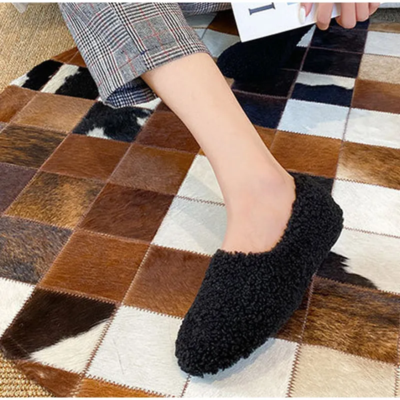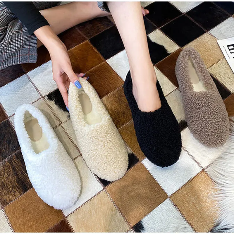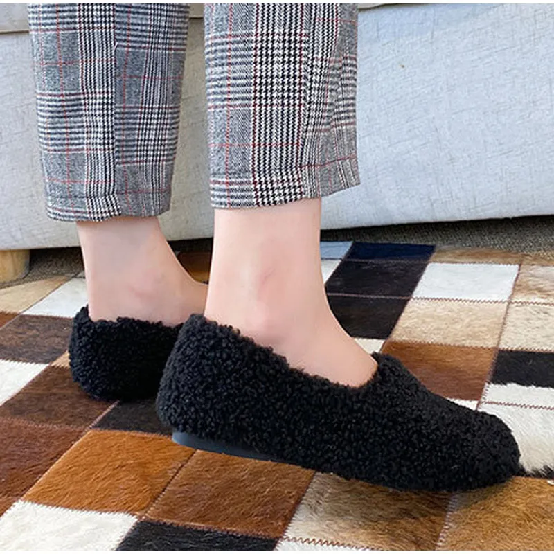 Зимние женские хлопковые туфли, Роскошные Мокасины из овечьей шерсти, теплые плюшевые женские лоферы, курчавая Овечка, женские меховые туфли на плоской подошве, большие размеры 34-43