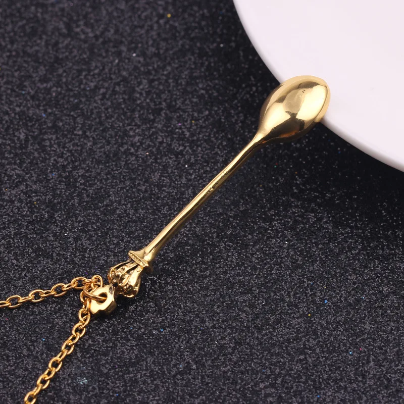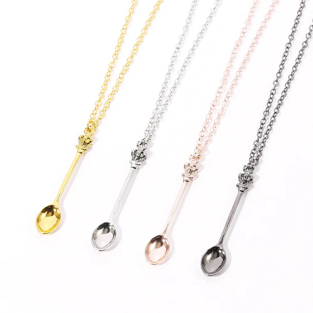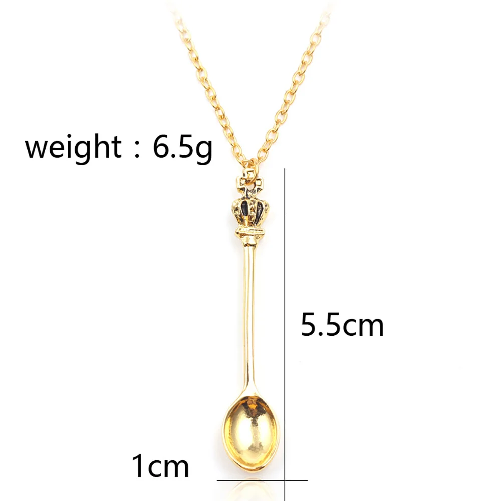1 шт., новая золотая зернистая мини чайная Корона, мини чайная ложка, винтажное Королевский табак, ожерелье для фестиваля Ibiza из нержавеющей стали