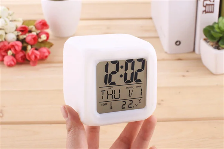 Цветные яркие Меняющие цвет часы-будильник креативные квадратные бе...