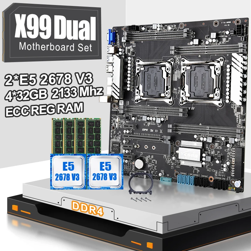 Комплект материнской платы JINGSHA X99DUAL LGA 2011-3 с E5 2678V3 и 4 шт. 32 Гб DDR4 2133 МГц ECC REG ОЗУ до 256 ГБ