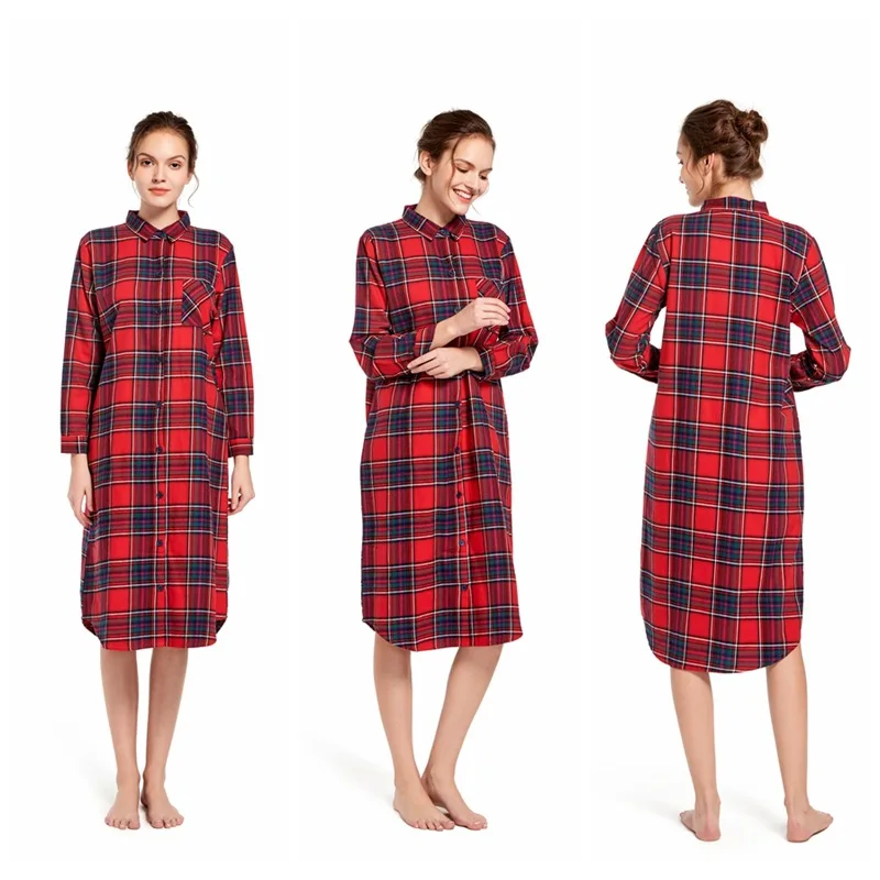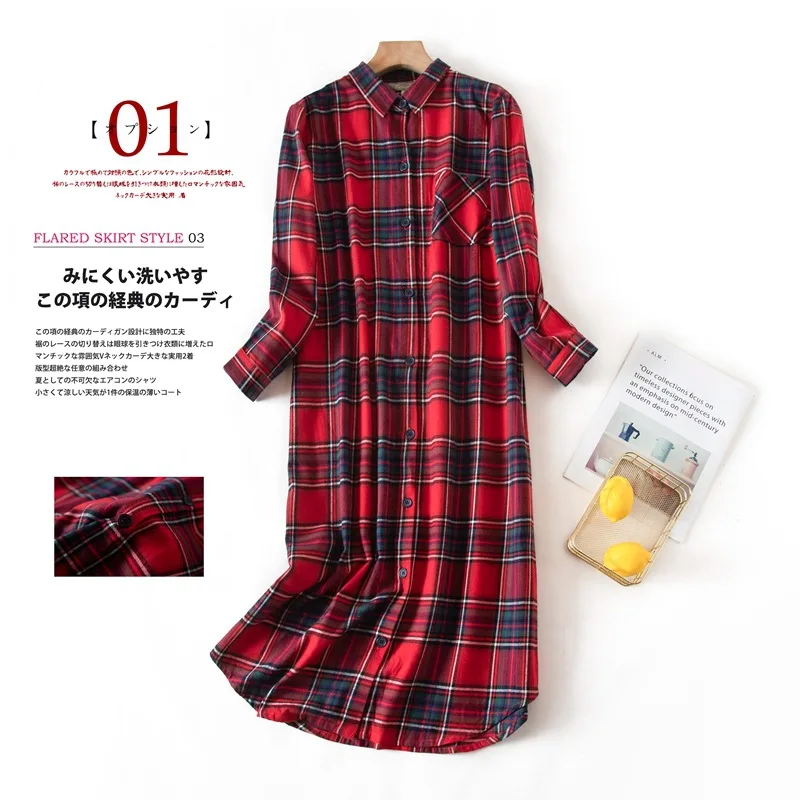 Новейшее осенне-зимнее женское Ночное платье в клетку, разные цвета, рубашка большого размера, ночное платье, кардиган, ночная рубашка для дам