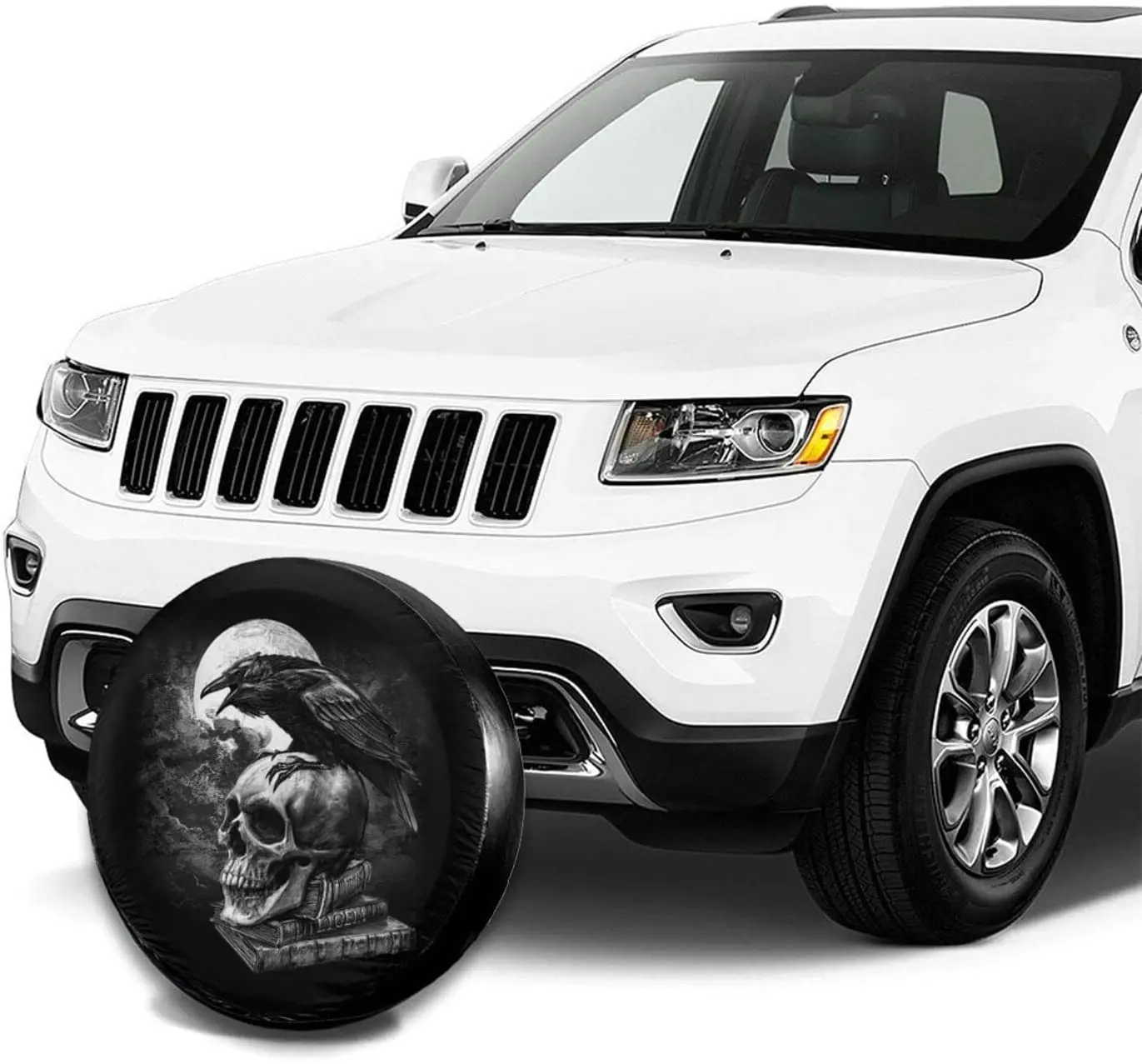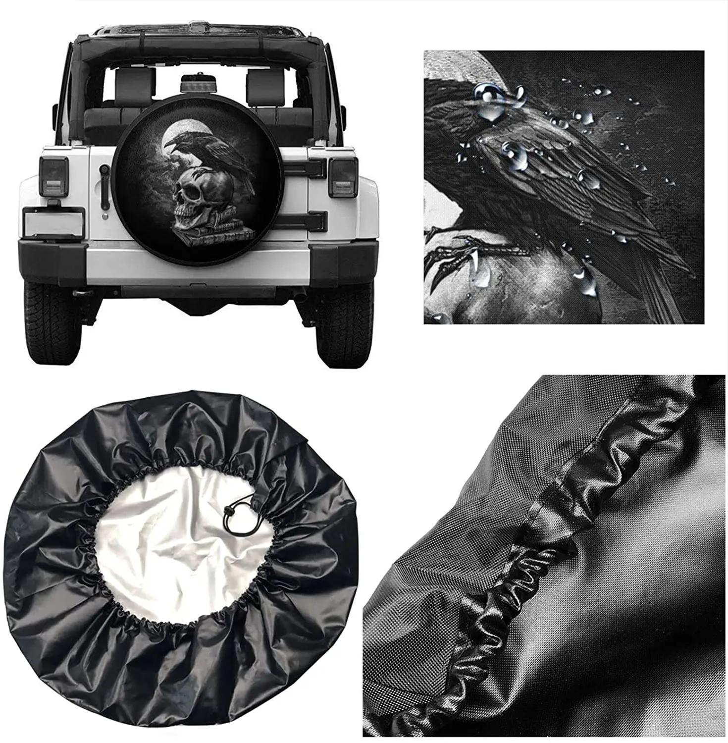 Чехол для запасных шин Crow on The Skull, автомобильные аксессуары, универсальные Защитные чехлы для запасных колес, водонепроницаемые чехлы для прицепов, домов на колесах, внедорожников