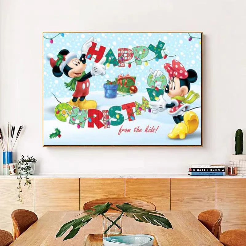Алмазная 5D картина, диснеевские мультфильмы, Микки и Минни, празднование Рождества, алмазная вышивка, мозаика, полная картина, домашний декор, подарки
