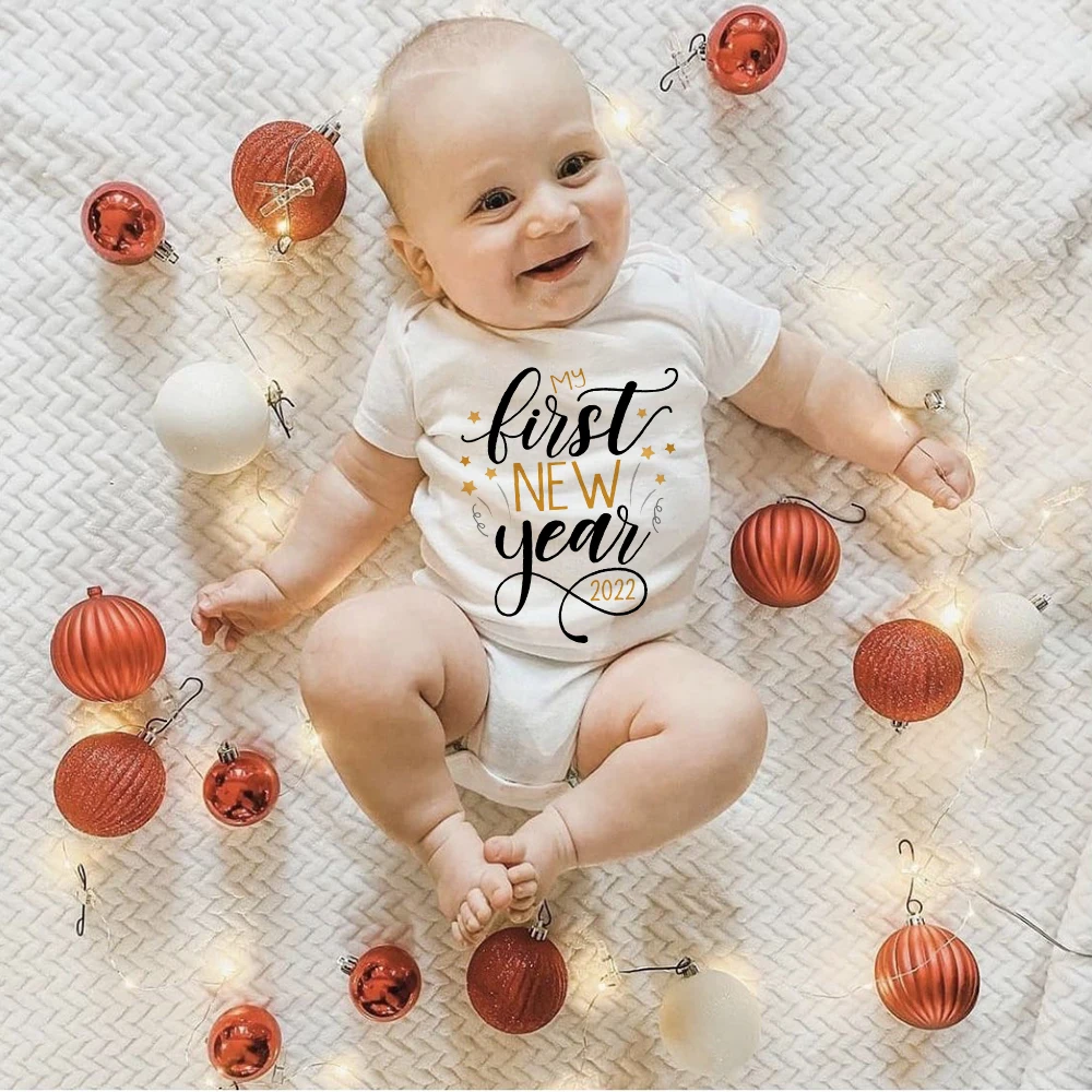 Мой первый новый год 2022, боди для новорожденных, комбинезон для мальчиков и девочек, комбинезон, наряды, одежда с коротким рукавом для малышей, рождественский подарок