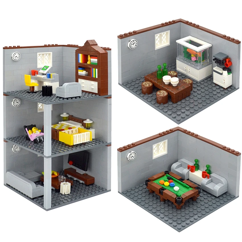 Городская мебель строительный блок MOC модель крыши дома креативная спальня пианино комната ванная комната снукер кабинет для детей Подарки