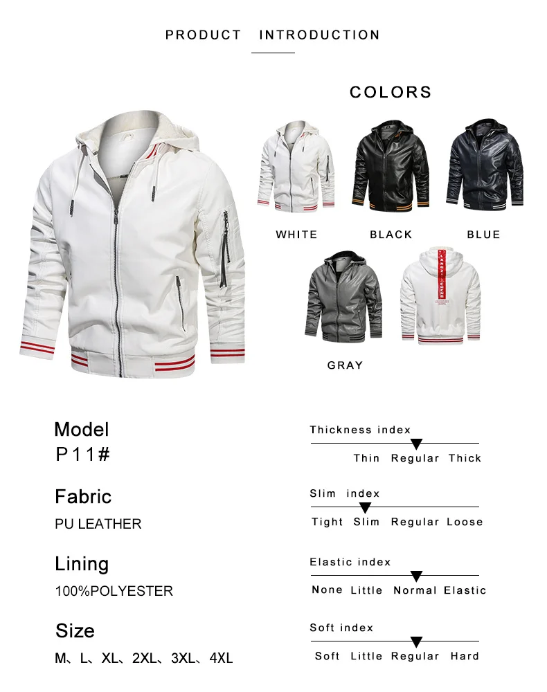 Мужская зимняя куртка-бомбер из ПУ кожи, с капюшоном