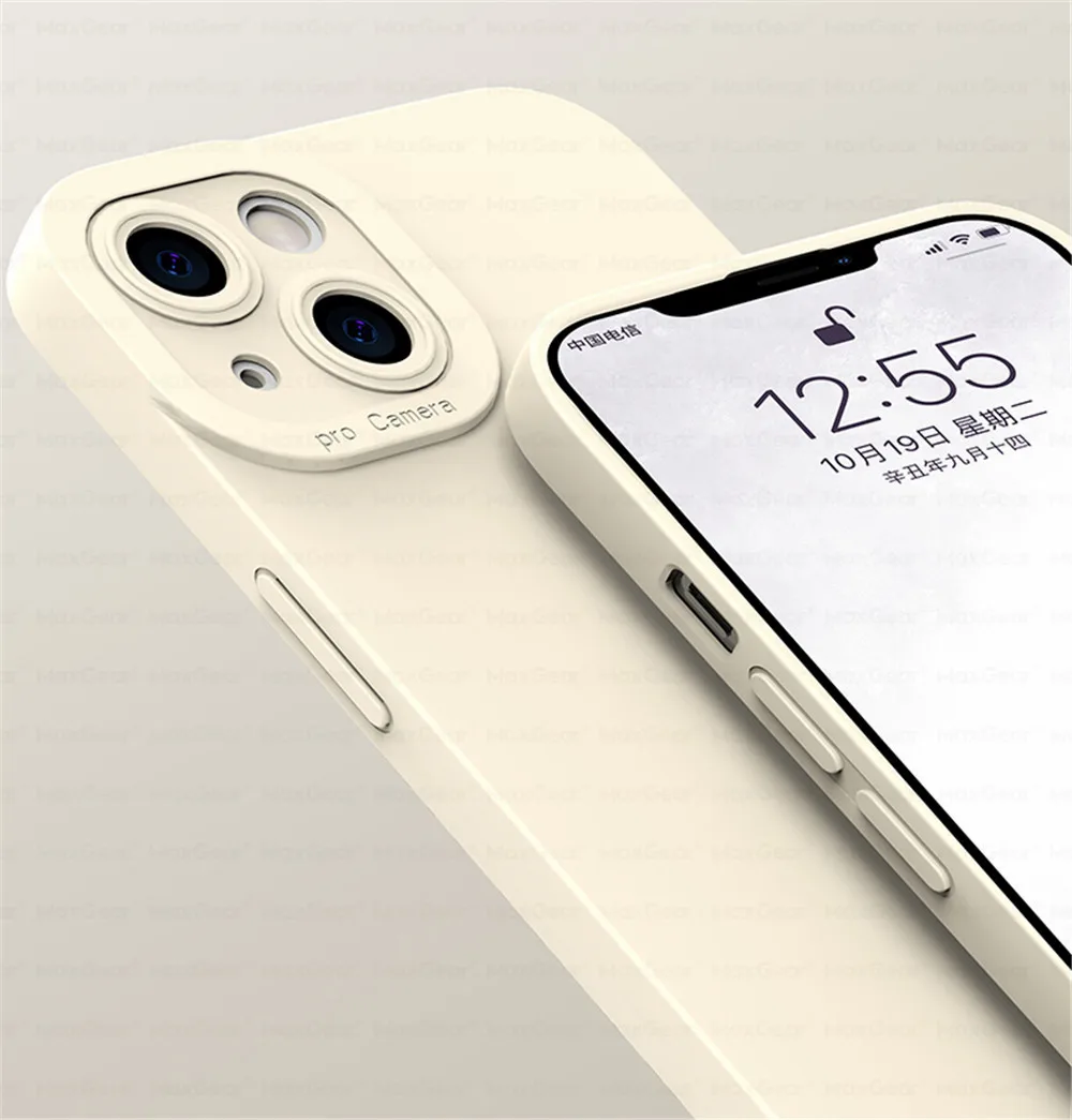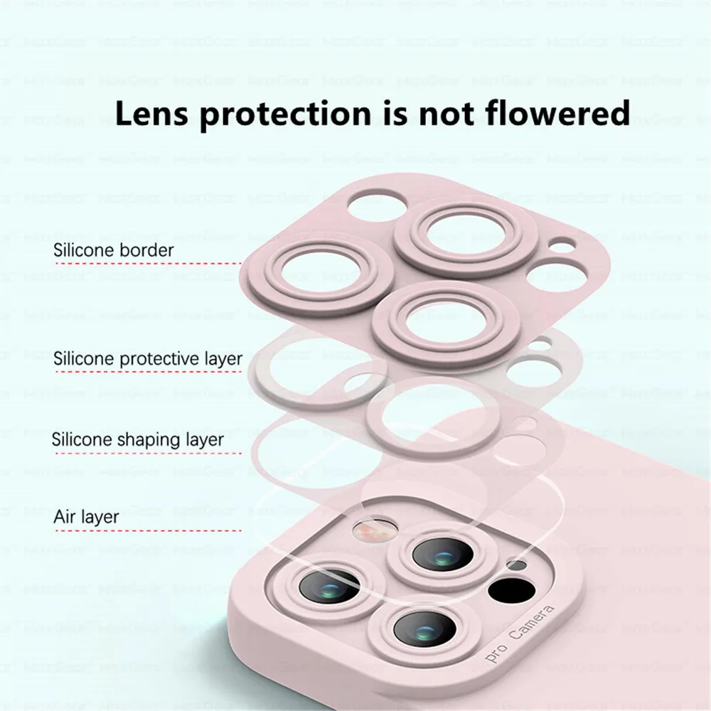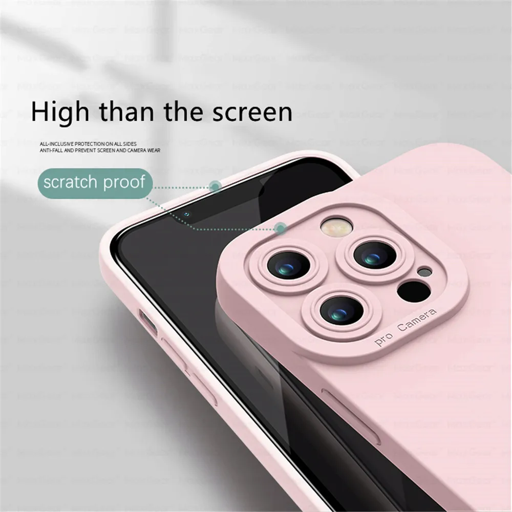 Роскошный жидкий силиконовый чехол для iPhone 13 12 11 Pro Max XR X XS 7 8 Plus SE 2 противоударный бампер Защита объектива Мягкий чехол