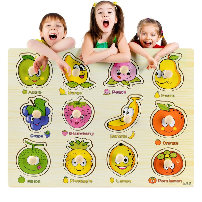 Houten Montessori Puzzel Sorteren Math Dieren Fruit Bricks Voorschoolse Leren Educatief Spel Baby peupter Jigsaw Puzzels Speelgoed