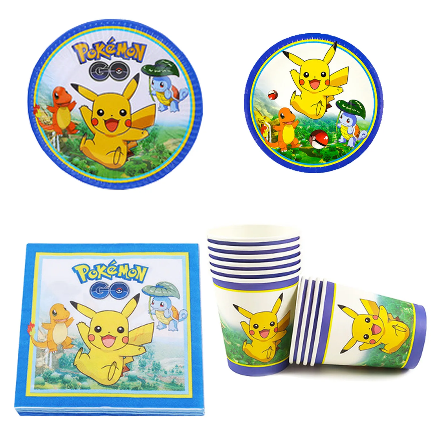 Новые Фигурки в стиле дня рождения с покемоном, модель Пикачу, столовая посуда, набор бумажных стаканчиков, бумажные тарелки, Аниме фигурки, игрушки для детей
