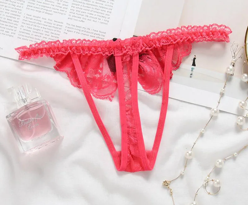 Сексуальные прозрачные кружевные женские трусики-танга с бантом и жемчугом, эластичные трусики с низкой талией, дышащие удобные женские трусы E63