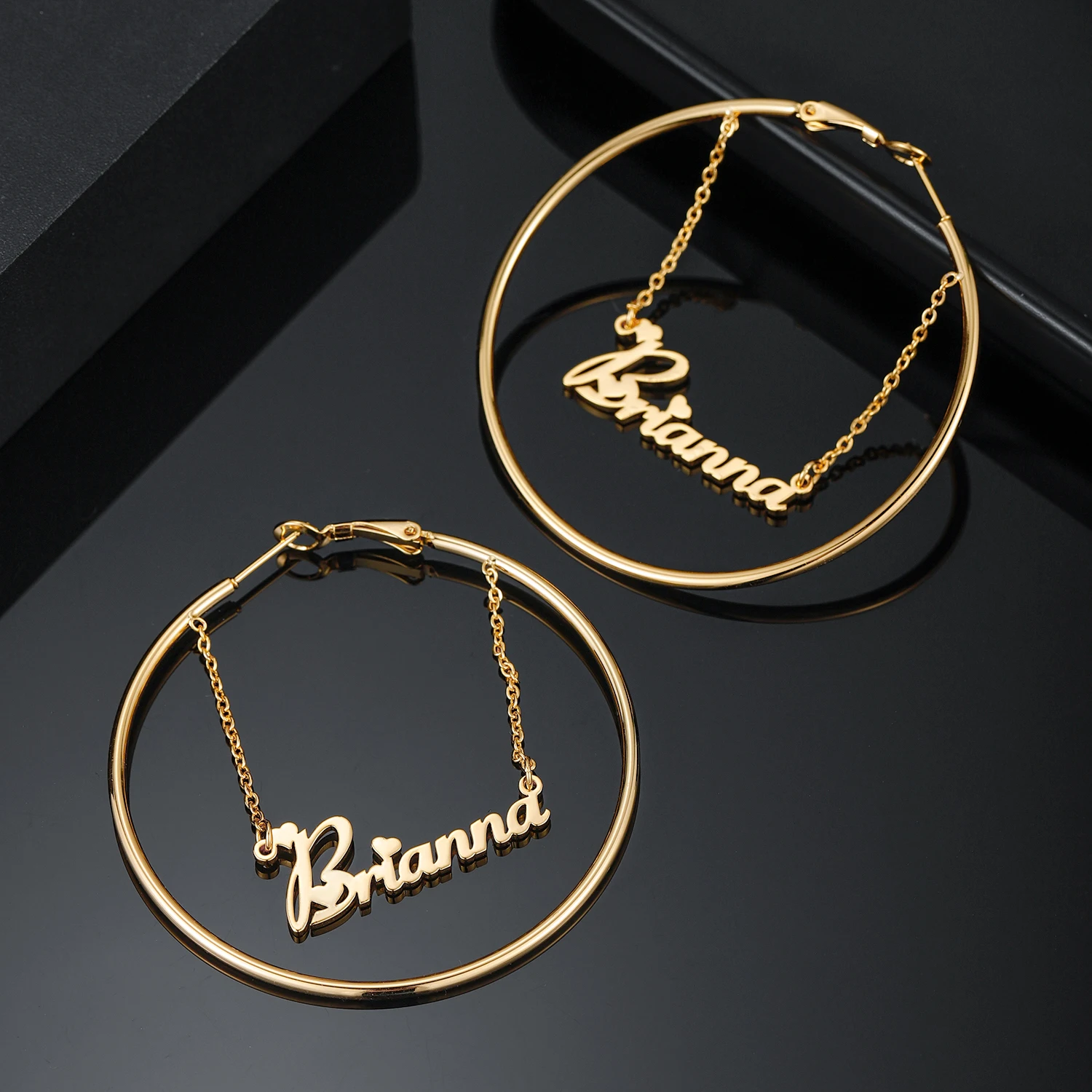 Висячие серьги-кольца с именем, Индивидуальные ювелирные изделия из нержавеющей стали, индивидуальные серьги-кольца для женщин, рождественский подарок, серьги, тренд 2021