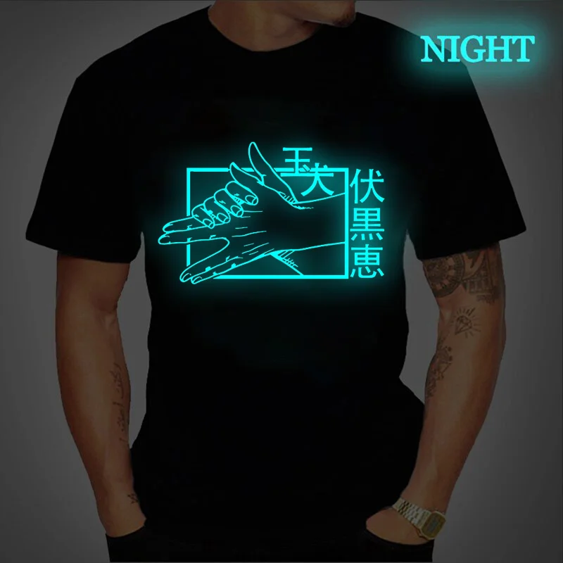 Футболка мужская с круглым вырезом, модная дышащая повседневная светящаяся футболка с аниме ююютсу Kaisen, простая удобная, в стиле Харадзюку