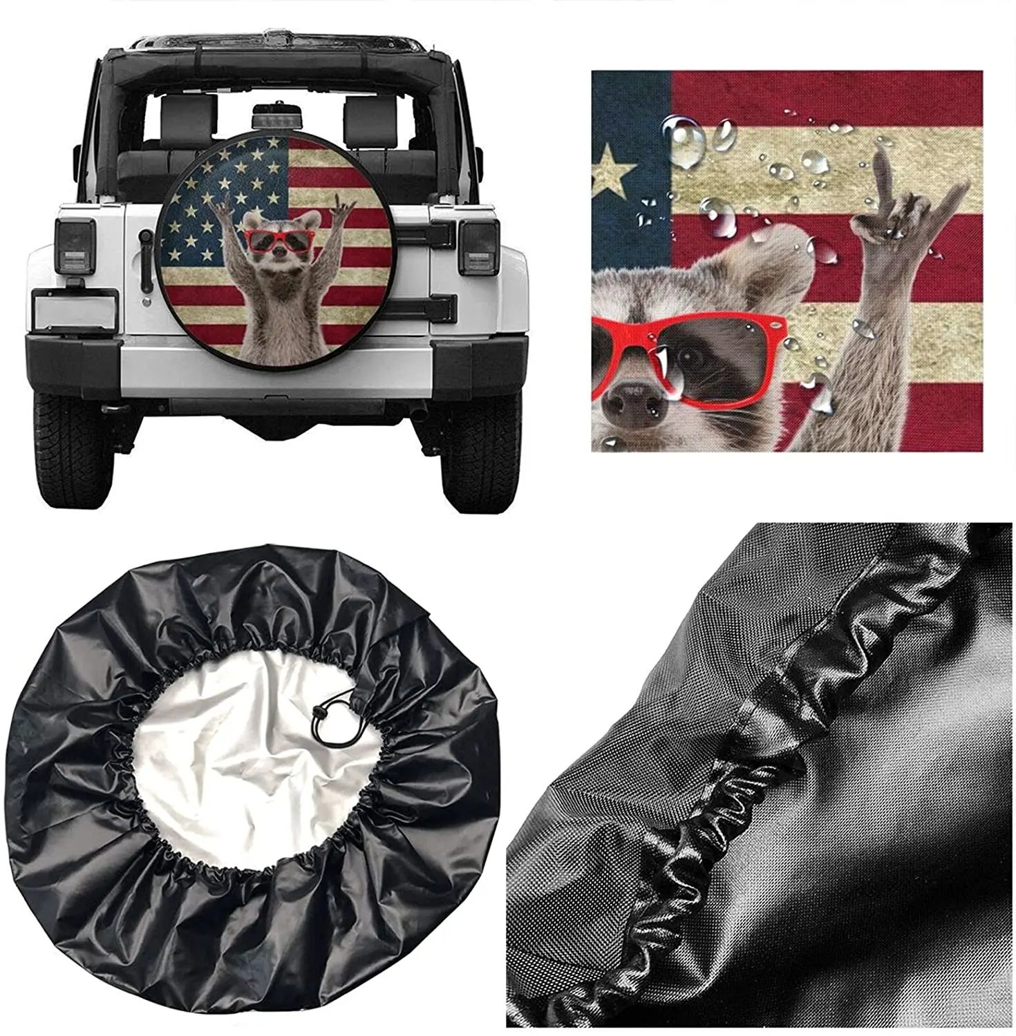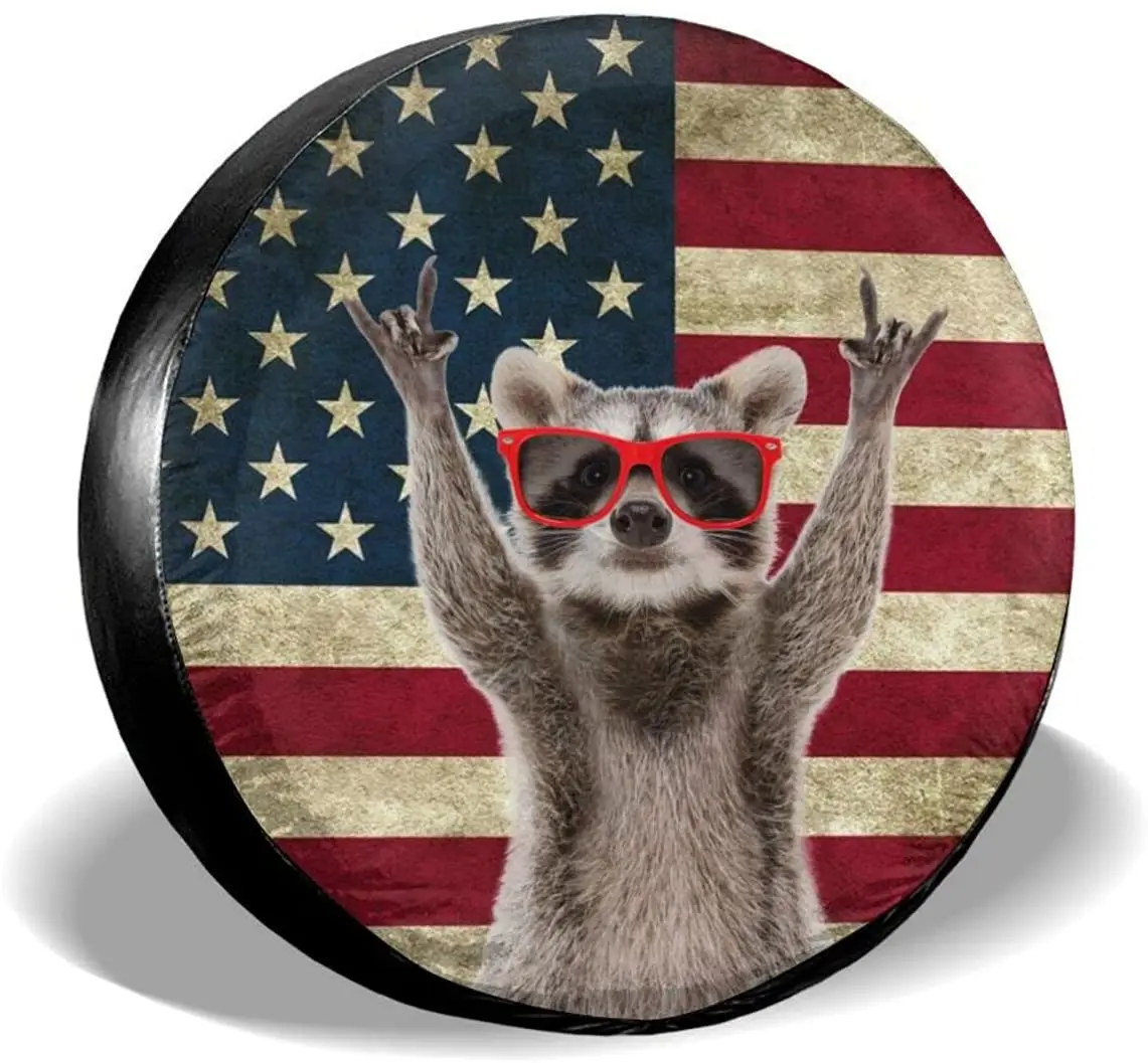 Забавный енот, американский флаг, крышка для шин, универсальная крышка для запасных колес, колпачки для колес для прицепа, фургона, внедорожника, грузовика, кемпера