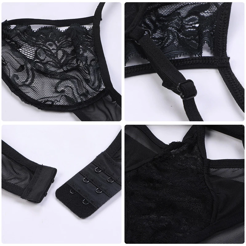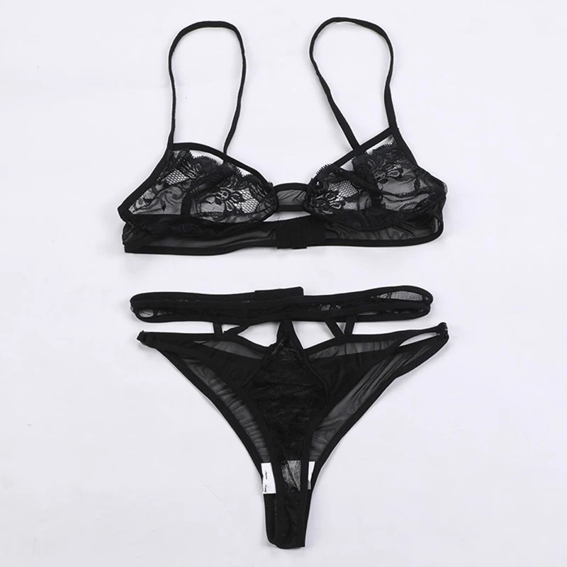 Сексуальное нижнее белье с вырезами, женские трусики и бюстгальтер, кружевной бюстгальтер пуш-ап на бретельках, сексуальный комплект для женщин, пижамный комплект бикини с тремя точками