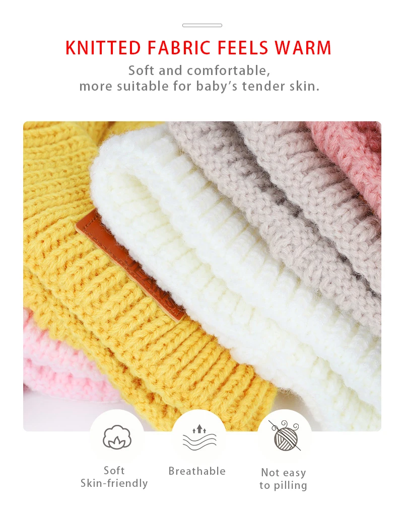 Милая шапка для малышей, шарф, перчатки, костюм, шапка бини, детские шапки для девочек, искусственный шарик, помпон, плюш, сохраняющий тепло, Зимний вязаный Skullies