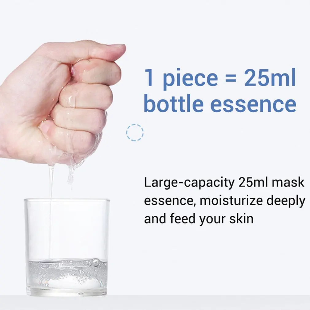 Маска содержит 25 мл маску эссенции, которая может создать Интенсивно увлажняющий и увлажняющий слой, который улучшает внешний вид обезвоженной, жирной кожи и оставляет ваше лицо кристально чистым и влажным.