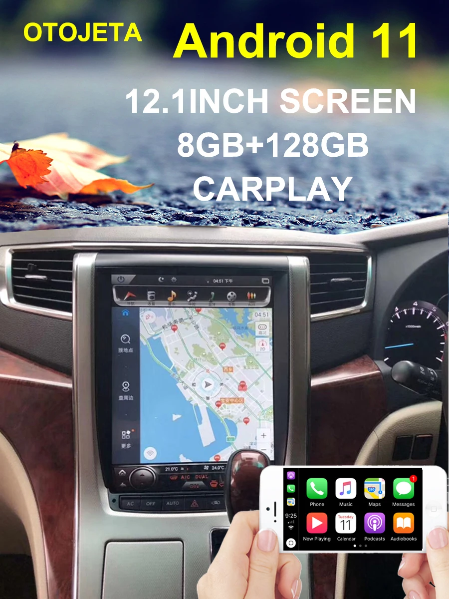 Автомобильный радиоприемник 12,1 дюйма, 128 Гб ПЗУ, экран Tesla, Android 11, для Toyota VELLFIRE Alphard H20 2008-2014, GPS, мультимедийный видеоплеер HU