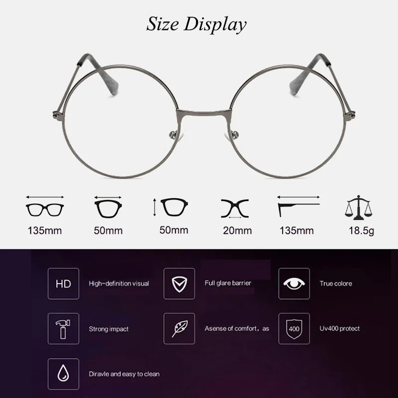 Новинка, модные круглые очки для женщин и мужчин, винтажные классические металлические плоские зеркальные оптические очки, оправа, унисекс очки Для Ухода За Зрением