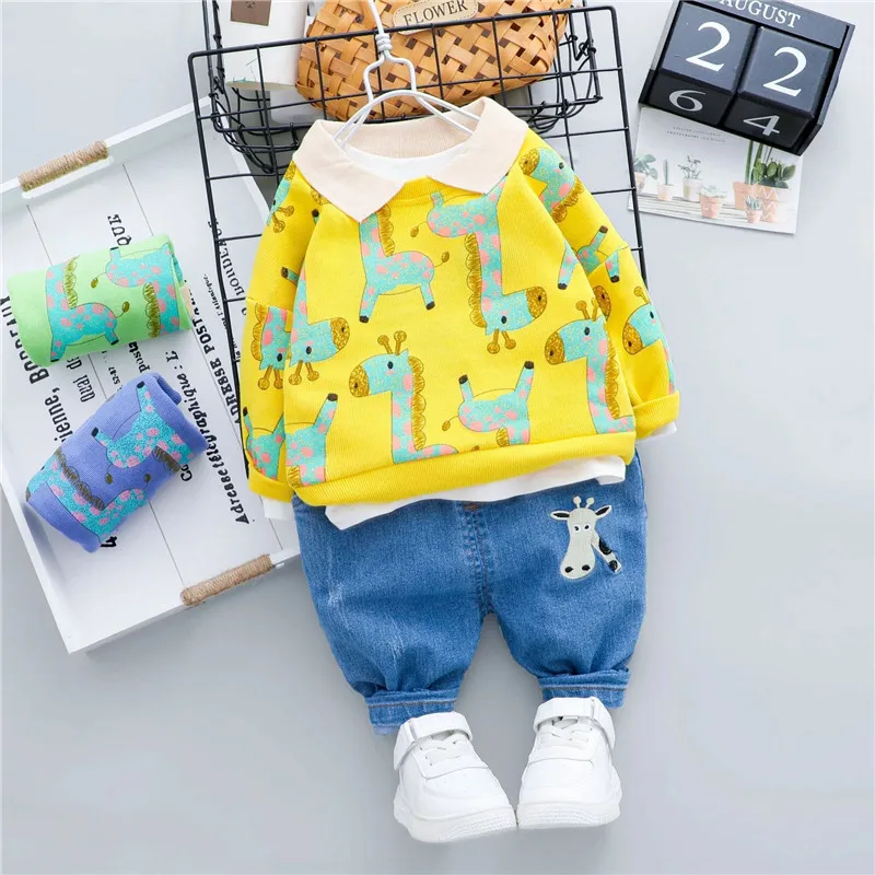 Bebesспортивный костюм комплект одежды для маленьких мальчиков, спортивный костюм unisix, комплект одежды, хлопковая футболка с длинными рукавами + штаны, 2 предмета
