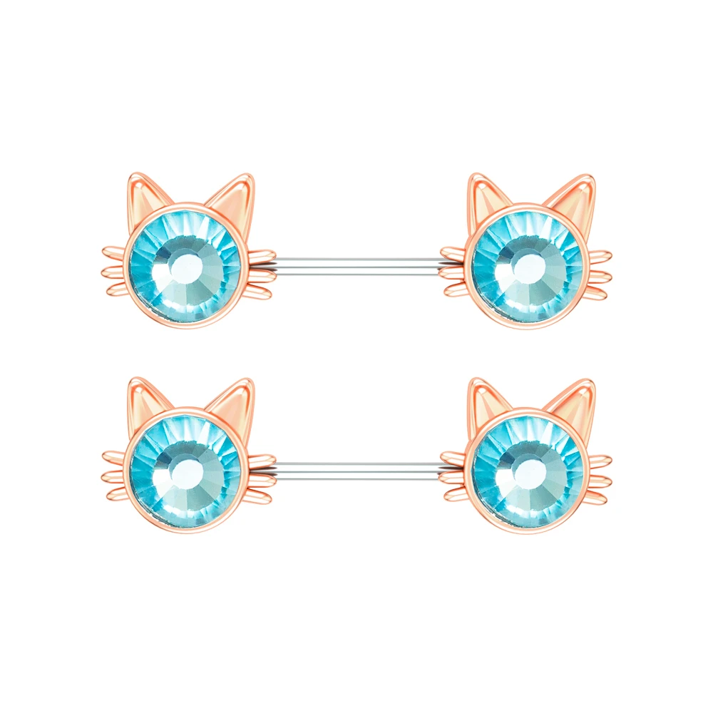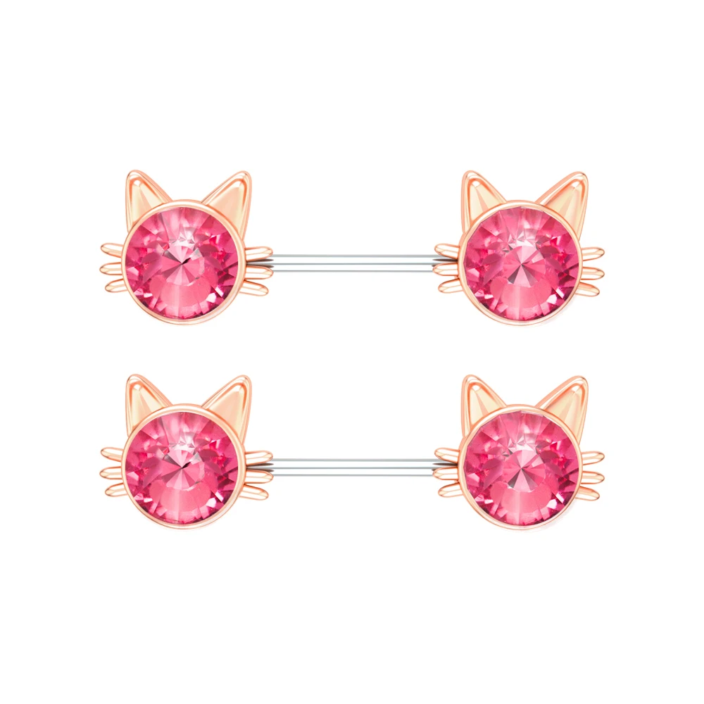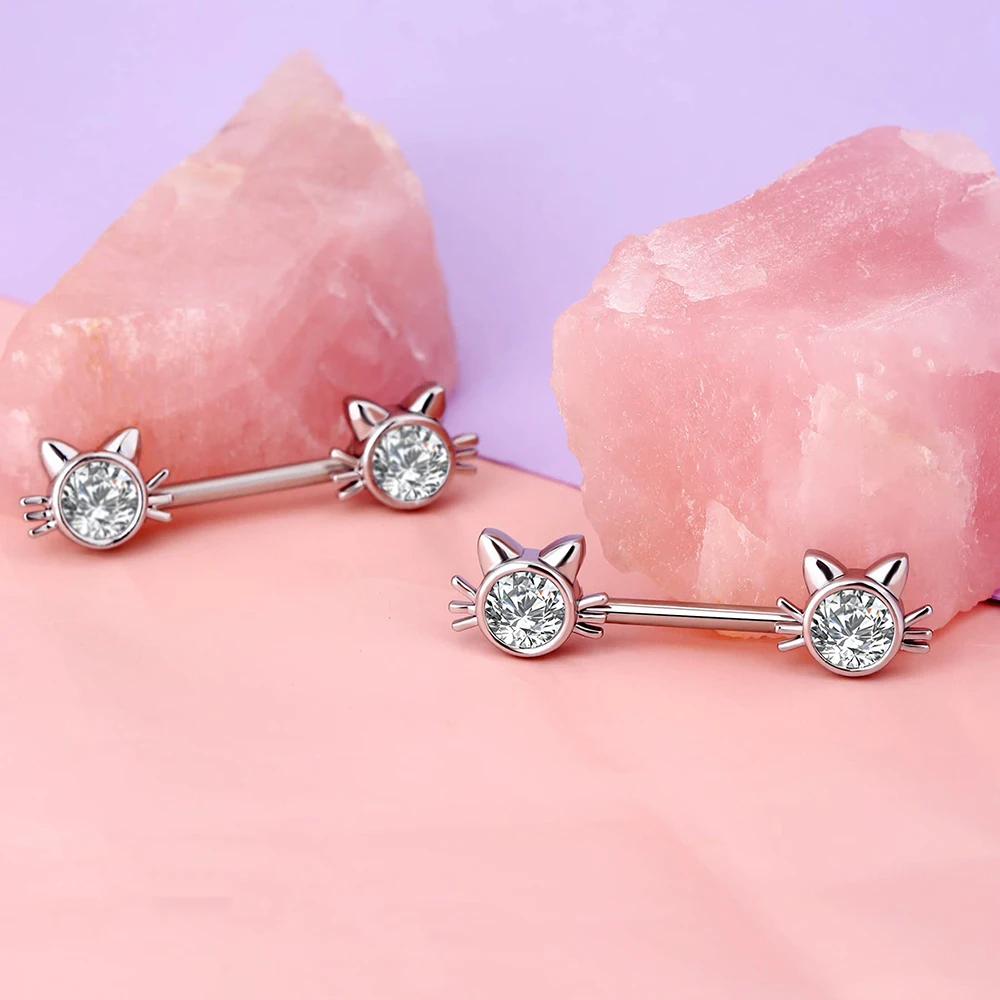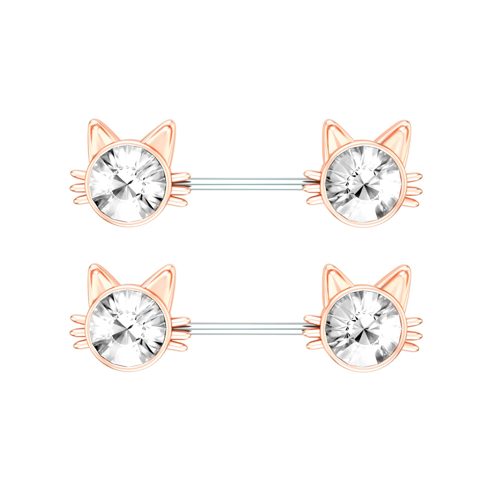 Кольца для пирсинга в виде симпатичной кошки, 2 шт., блестящие кольца для груди, штанга, защитная крышка, пирсинг, Pezon Teton Oreja, ювелирные изделия для тела