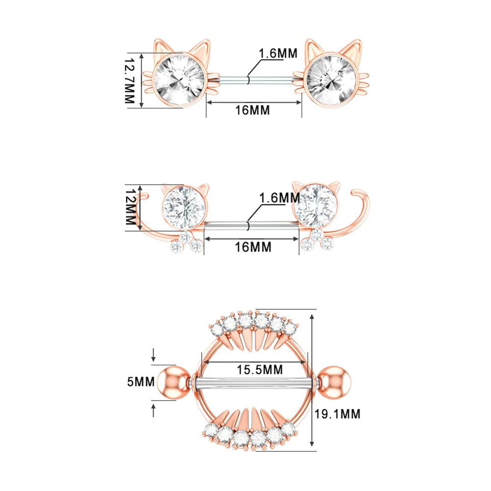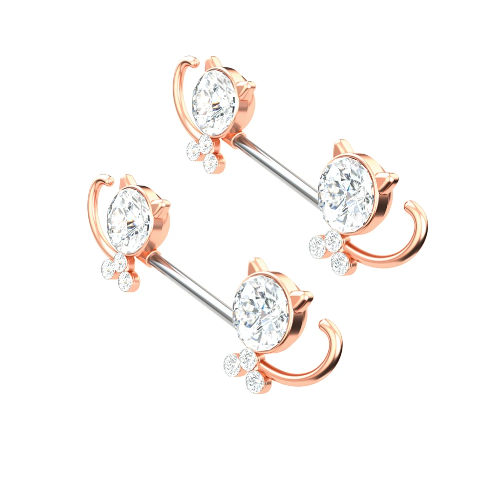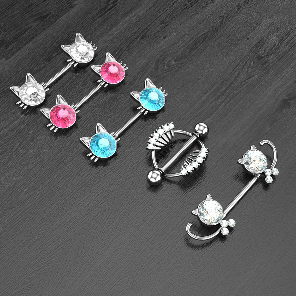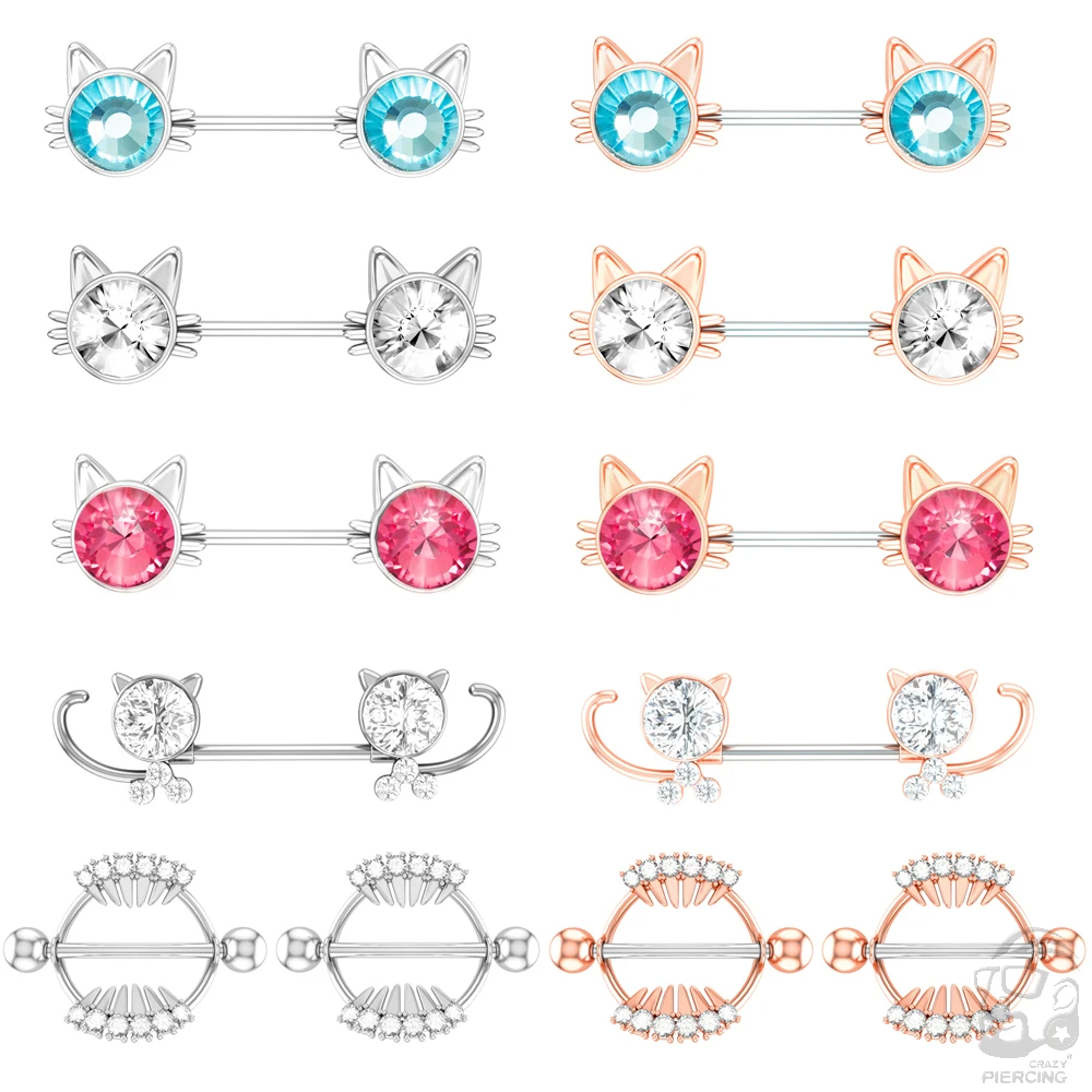 Кольца для пирсинга в виде симпатичной кошки, 2 шт., блестящие кольца для груди, штанга, защитная крышка, пирсинг, Pezon Teton Oreja, ювелирные изделия для тела