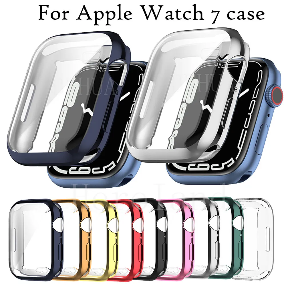 2 шт.лот, полный защитный чехол для Apple Watch серии 7, 41 мм, 45 мм, смарт-экран, защитная оболочка, чехол, мягкий ТПУ, аксессуары, чехлы