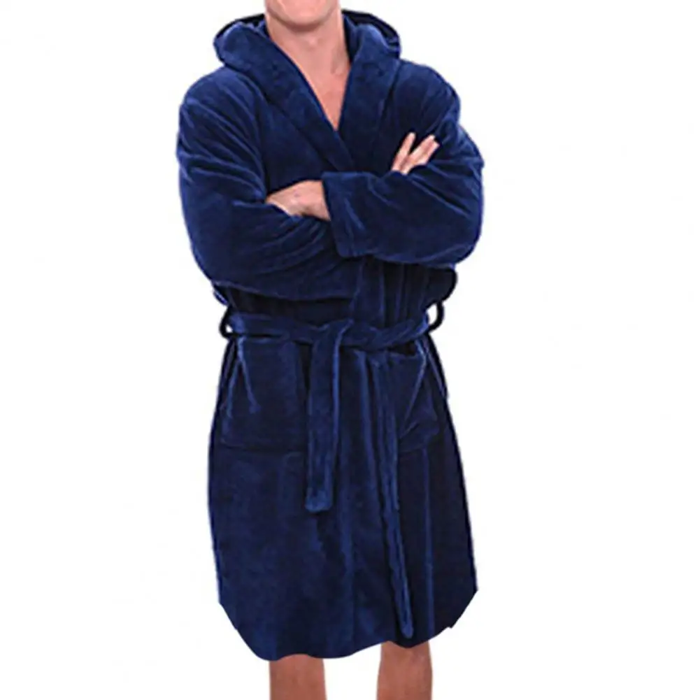 Однотонный фланелевый банный халат с поясом унисекс банный халат с капюшоном утепленная плюшевая ночная рубашка одежда для сна