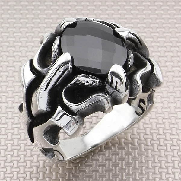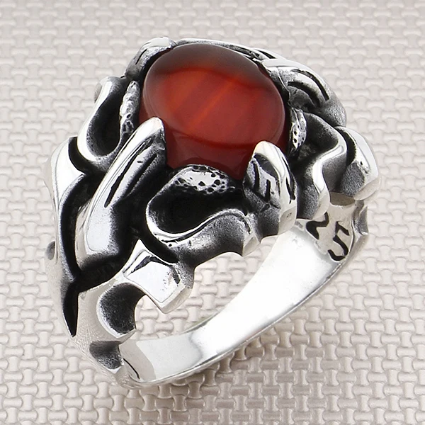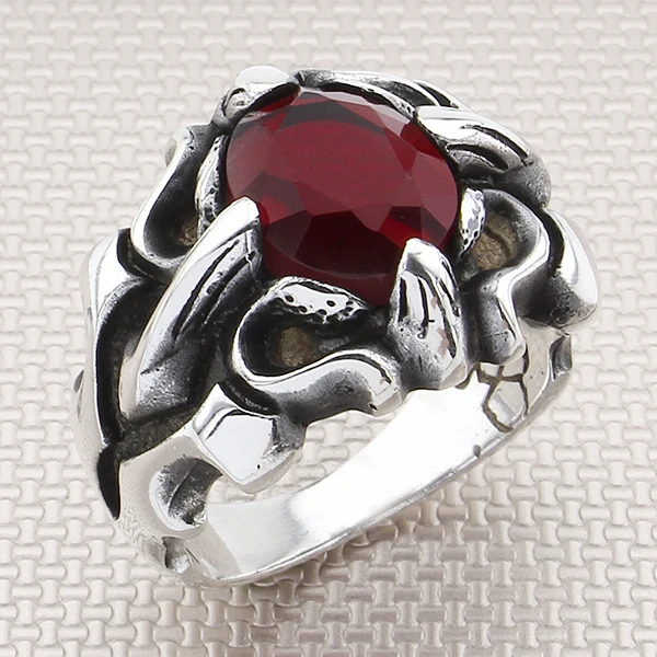 Мужское кольцо с овальным красным цирконом, в готическом стиле
