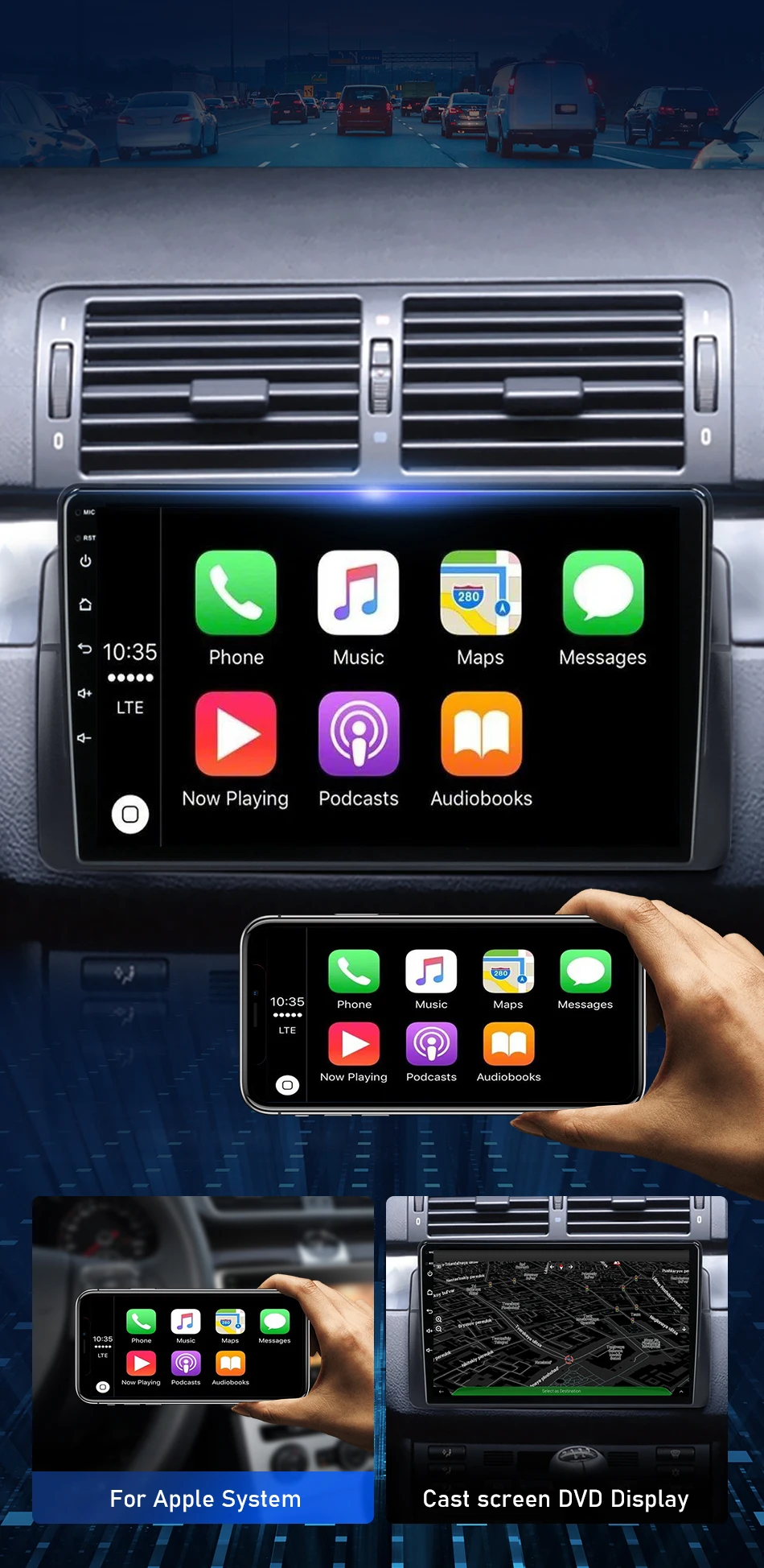 По сравнению с оригинальным автомобилем, экран больше, цвета более яркие, и он поддерживает просмотр под разными углами. Новая рама сделана в соответствии с оригинальным автомобилем, который идеально сочетается с вашим автомобилем и прост в установке.