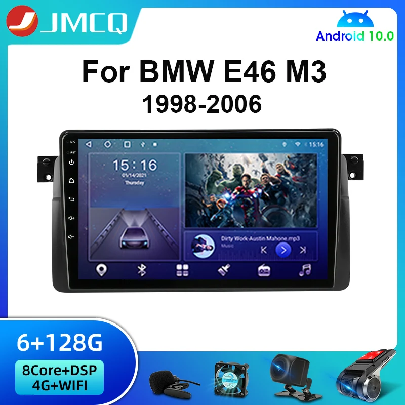 Автомагнитола JMCQ, 2 Din, Android 10,0, мультимедийный видеоплеер для BMW E46 M3 318i 1998-2006, GPS, 4G, Carplay, стереоколонки, Авторадио