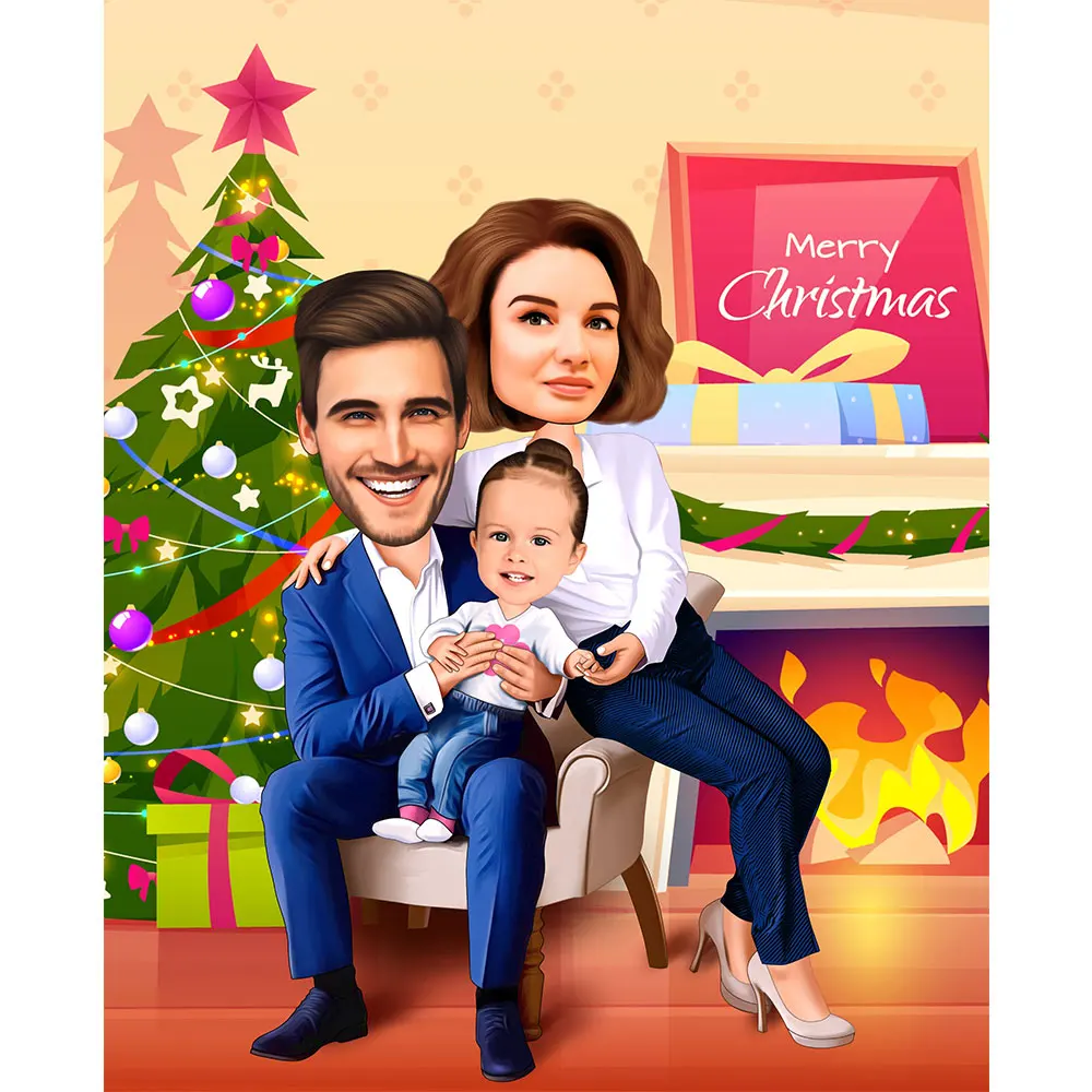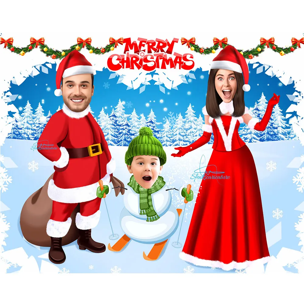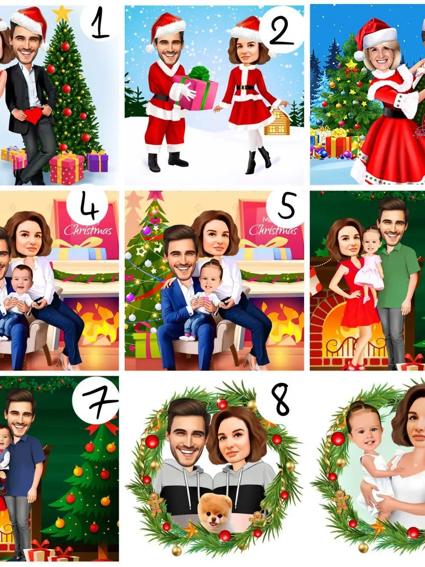 Персонализированный рождественский подарок, мультяшная семья, рандомная Картина на холсте с индивидуальным рисунком, Настенная картина для комнаты, домашний декор