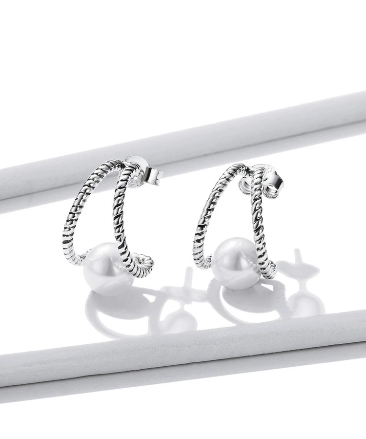 Женские серьги-гвоздики с жемчугом, из серебра 925 пробы