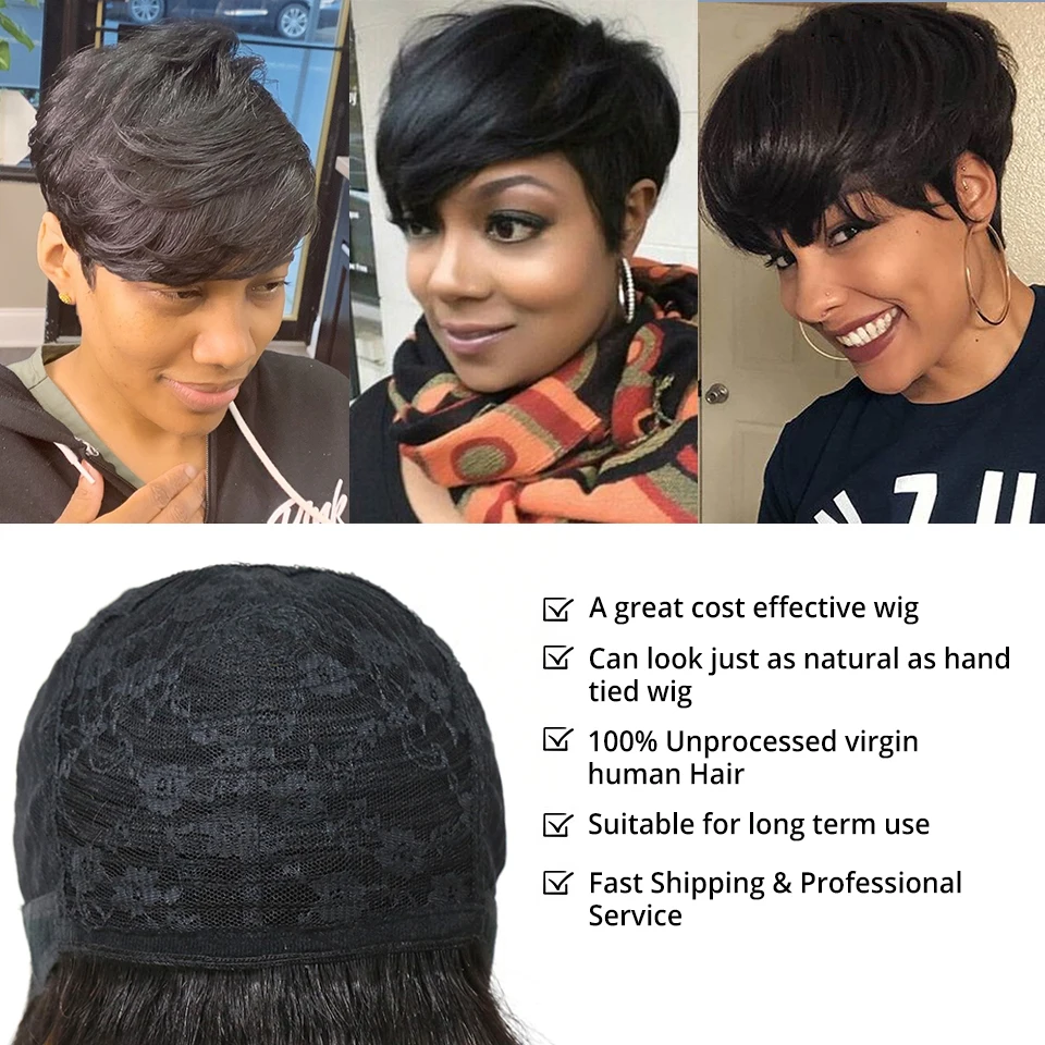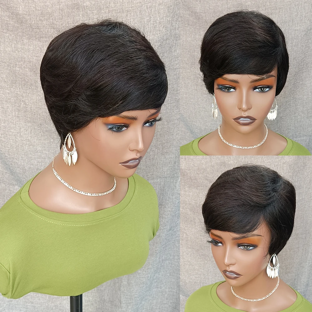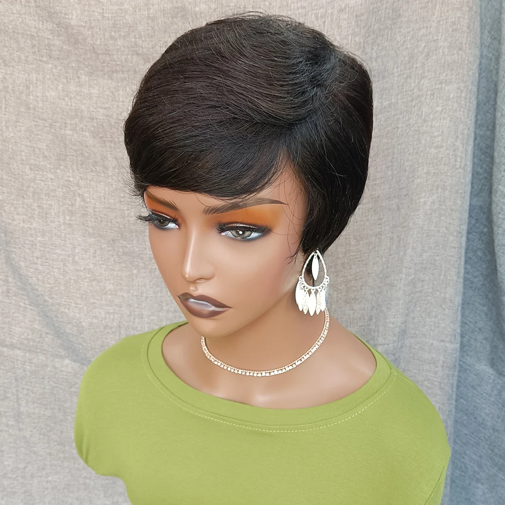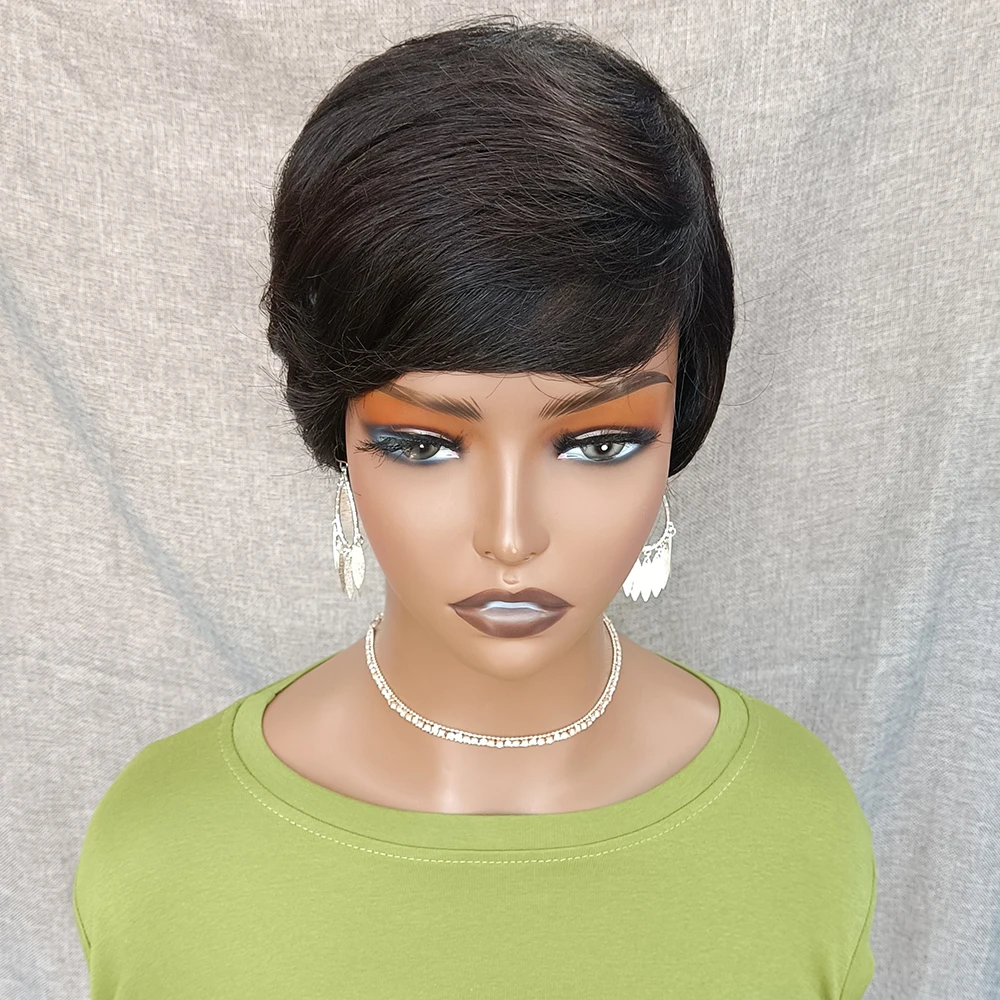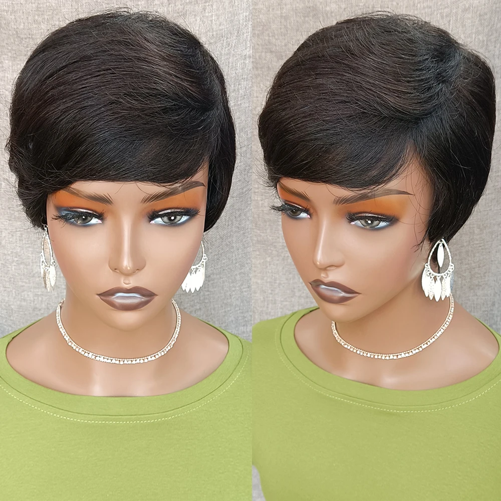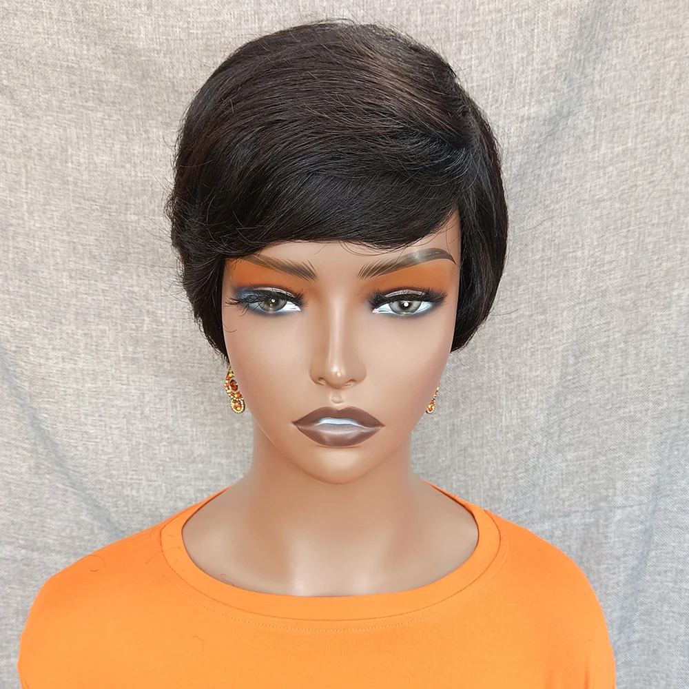 Короткие человеческие парики с челкой, декорированные натуральными волосами Remy, парик с вырезами фея, парики из человеческих волос для чернокожих женщин, дешевые прямые волосы, парик Боб